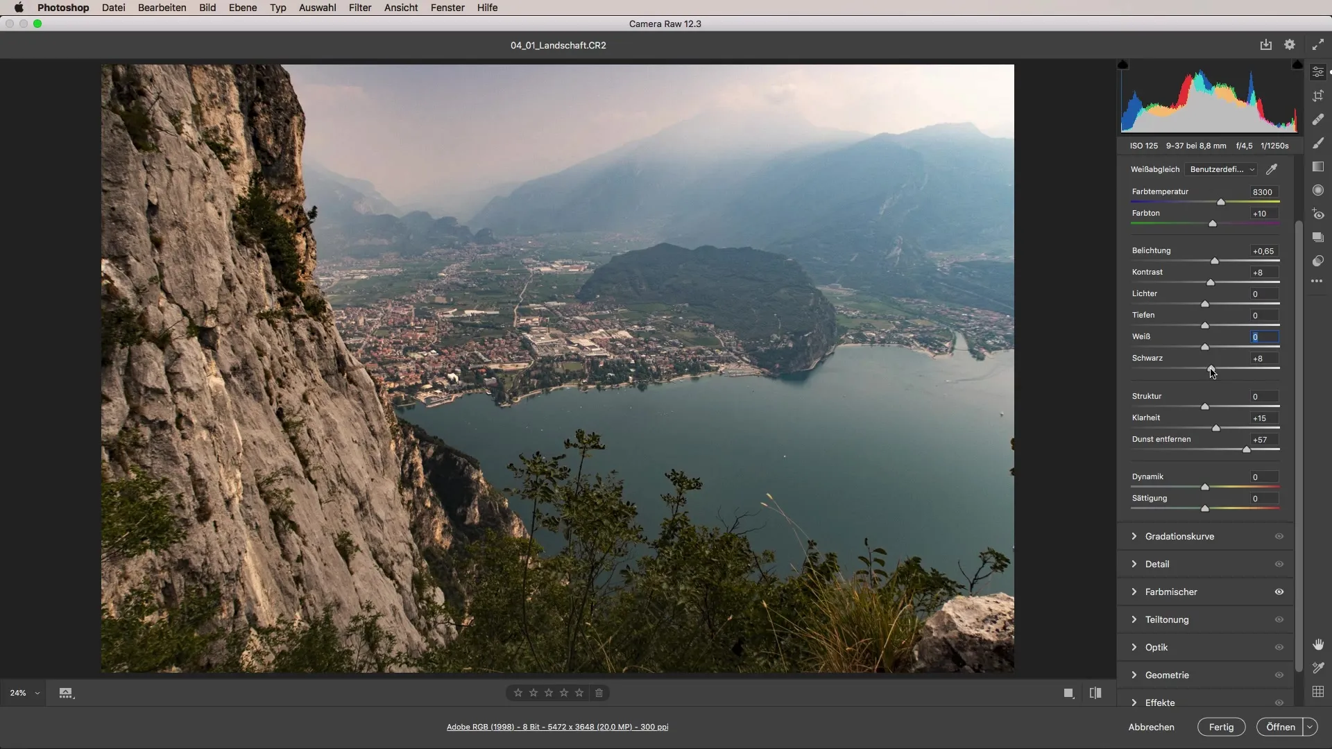 Start by selecting your landscape image in Camera Raw. The first impression of the image is crucial, and often the mood can be significantly improved by the basic settings.