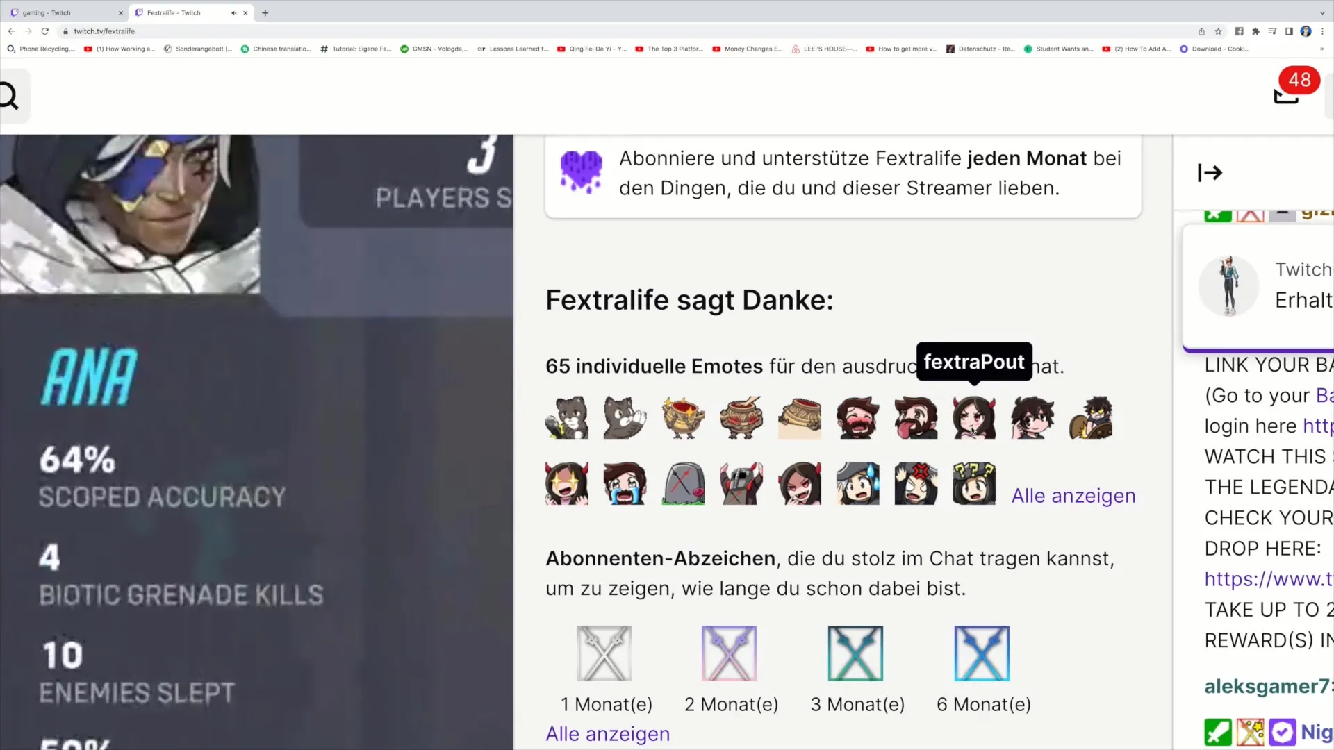On the right side of the screen, you will see options to follow the streamer or subscribe. A free monthly subscription is possible if you have Amazon Prime. By doing so, you support the streamer and also receive special benefits reserved for subscribers.
