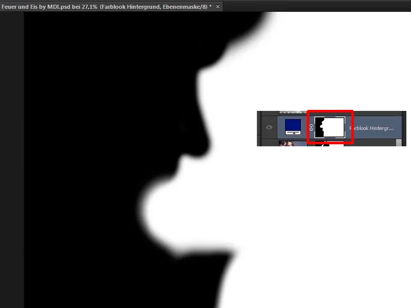This effect, this darkening, should of course only affect the background. This means that you invert the mask with Ctrl+I. This reverses the layer mask from a white mask to a black mask.