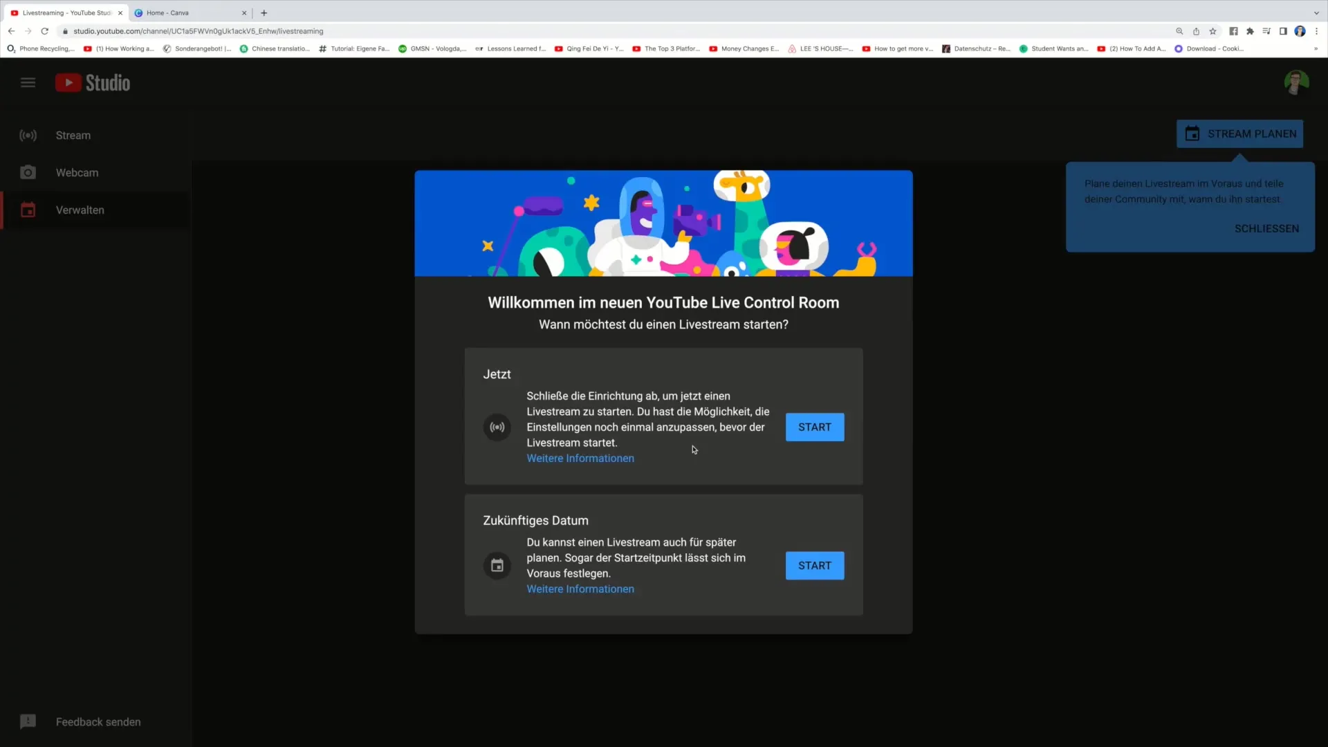 Before you can start your livestream, you must have your own YouTube channel. To create one, you only need a Google Account. Go to YouTube, click on your profile picture in the upper right corner, and select "Create a Channel." Follow the instructions to create your channel.