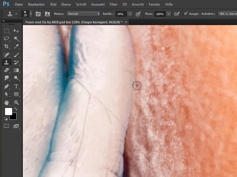 Now you can paint these areas into the picture with a lower opacity (34%). This can also be corrected at any time by moving a little further into the image. You can also press the Alt key again and again to make some areas look really good.