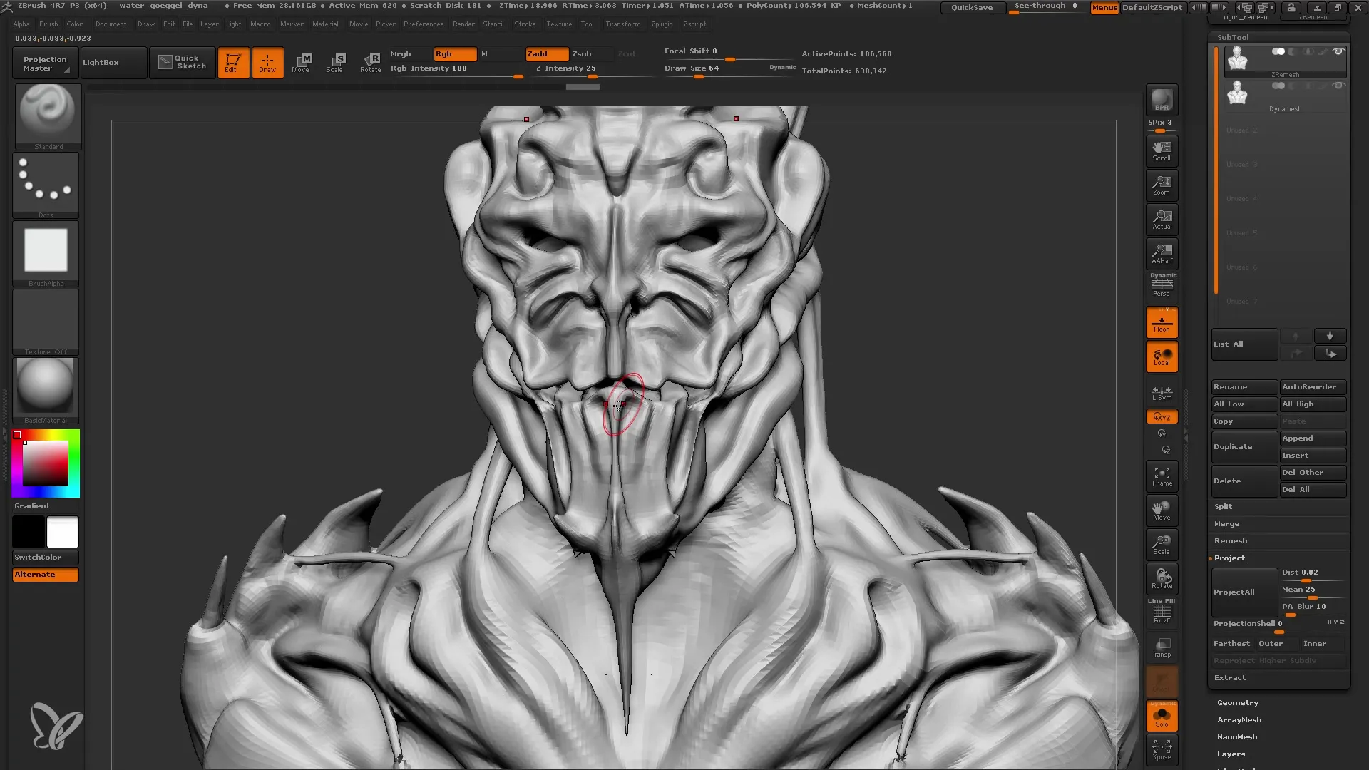 Finally, after working with the subdivision levels, you can determine how much detail you want to add to your model. ZBrush allows you to add subdivision levels without changing the base polygon count.