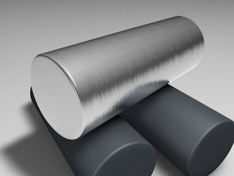 High time for a rendering of our aluminum material. Applied to a cylinder, the directions of the reprojection and the primary and secondary grooves can be seen very clearly.