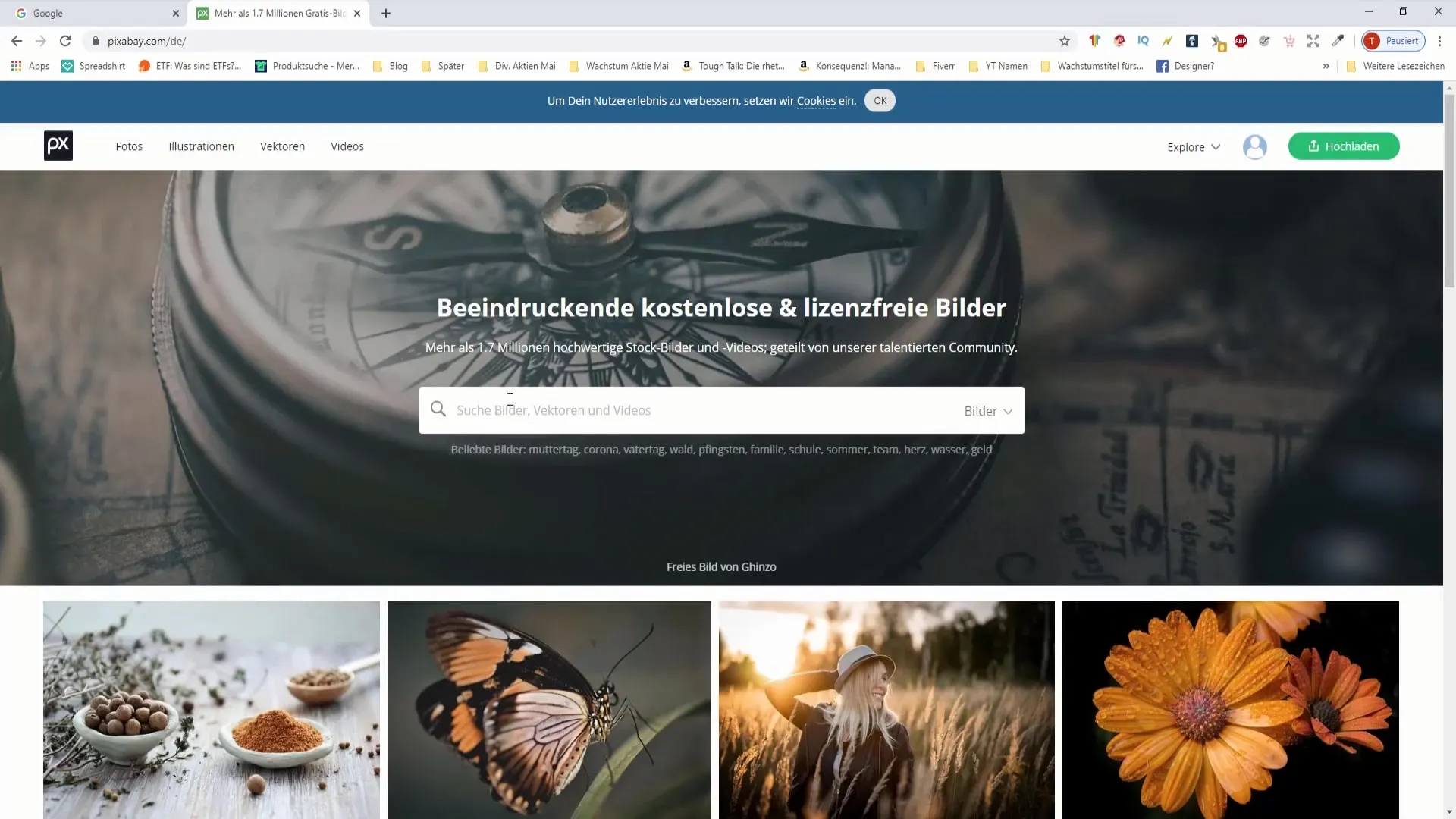 Start by opening your preferred search engine. For this tutorial, I recommend using Pixabay, a platform with over 1.7 million images that you can use for free. Go to pixabay.com.