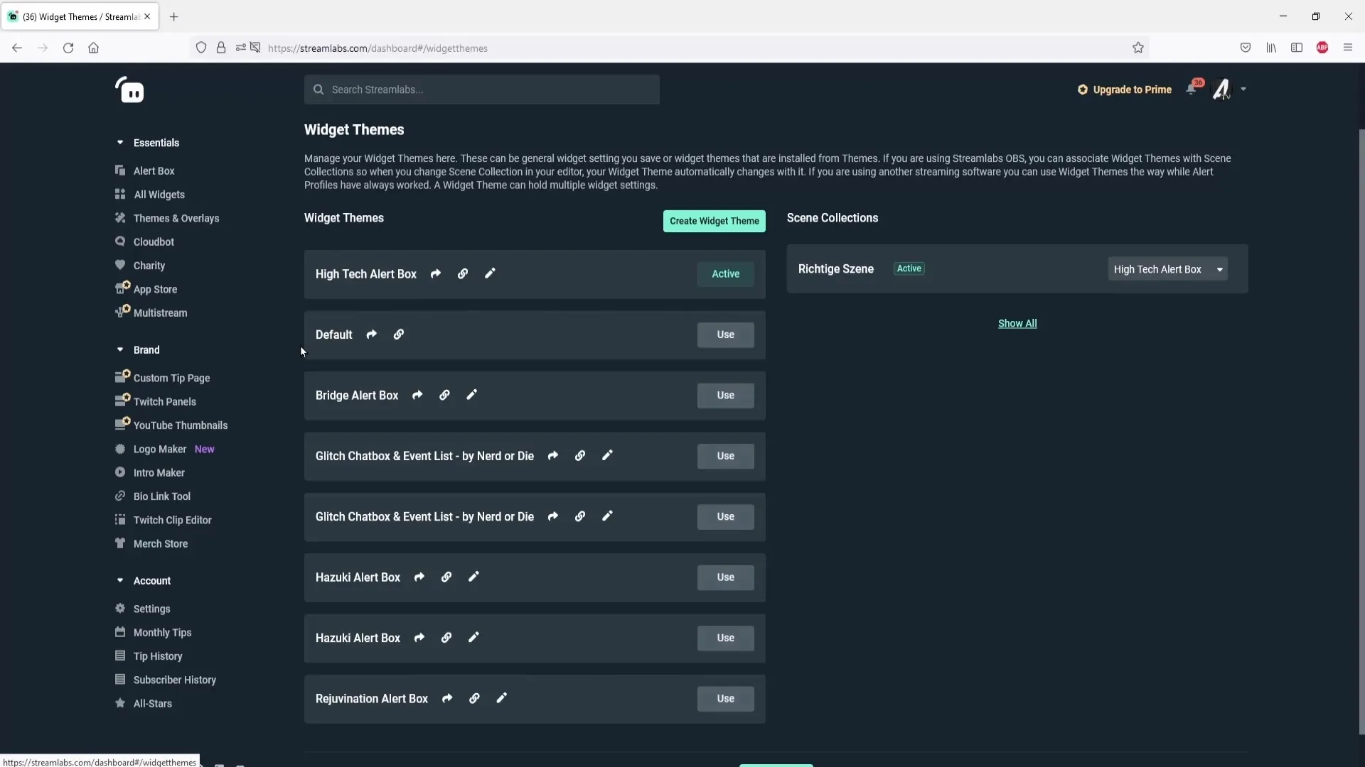 To manage your downloaded alerts, go to your dashboard and click on "Alertbox." Here you will find the "Manage Themes" button, which will show you an overview of all your downloaded alerts. The default alerts that come with Streamlabs are also listed here. If you want to delete an alert, you can do so by clicking on "delete."
