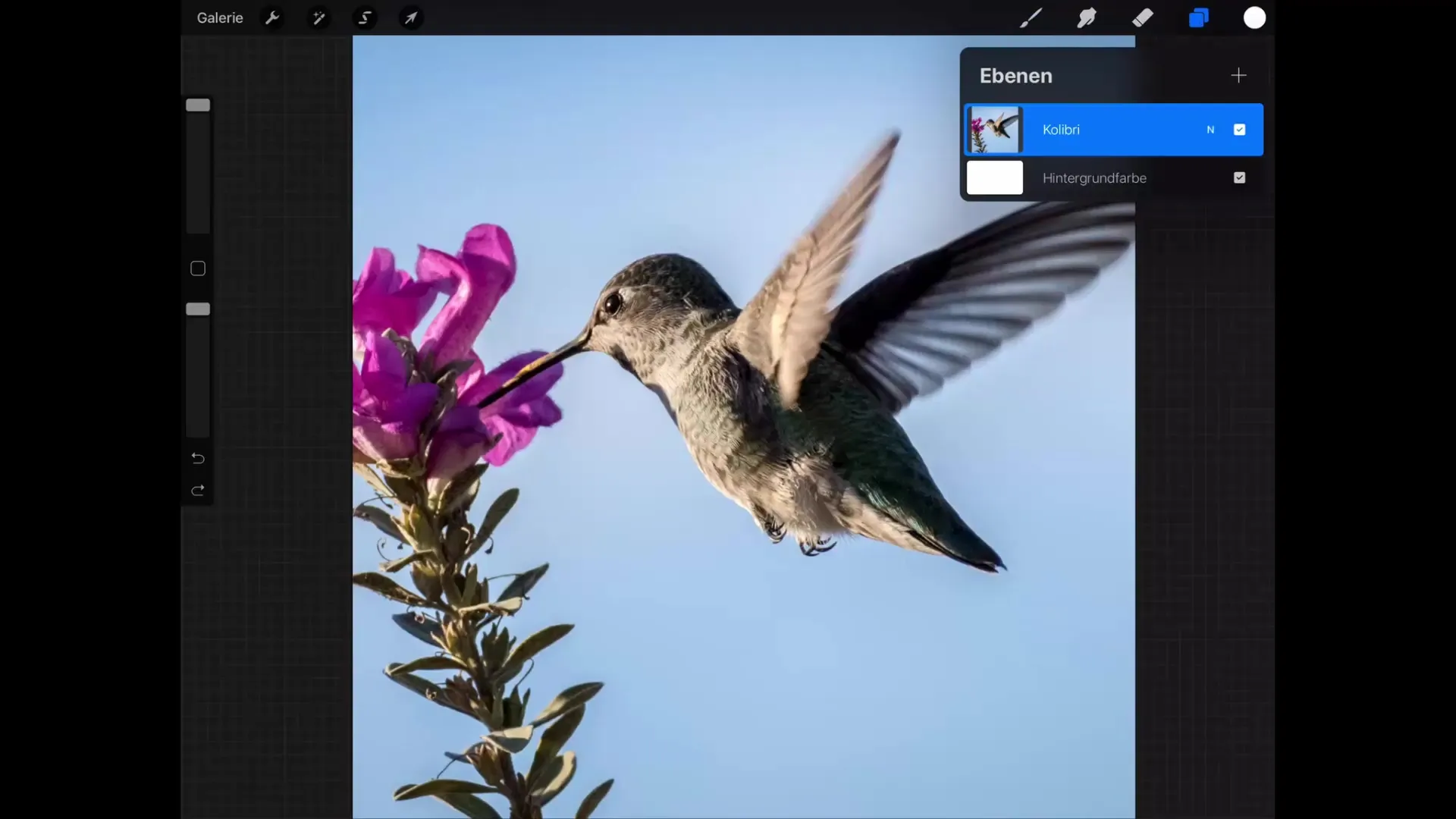 To try out the different blending modes, first create a new layer. Tap the “+” symbol in the layers menu. Now you have an additional layer that you can edit to test the functions of the blending modes.