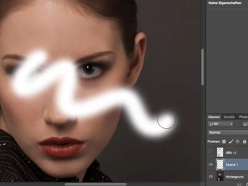 And then I'll think about using black and white, I can brush around on this empty layer here and paint markings into the picture: Where do I actually want to do Dodge & Burn? (Note: If you have now painted into the image, undo it so that the layer is empty again).