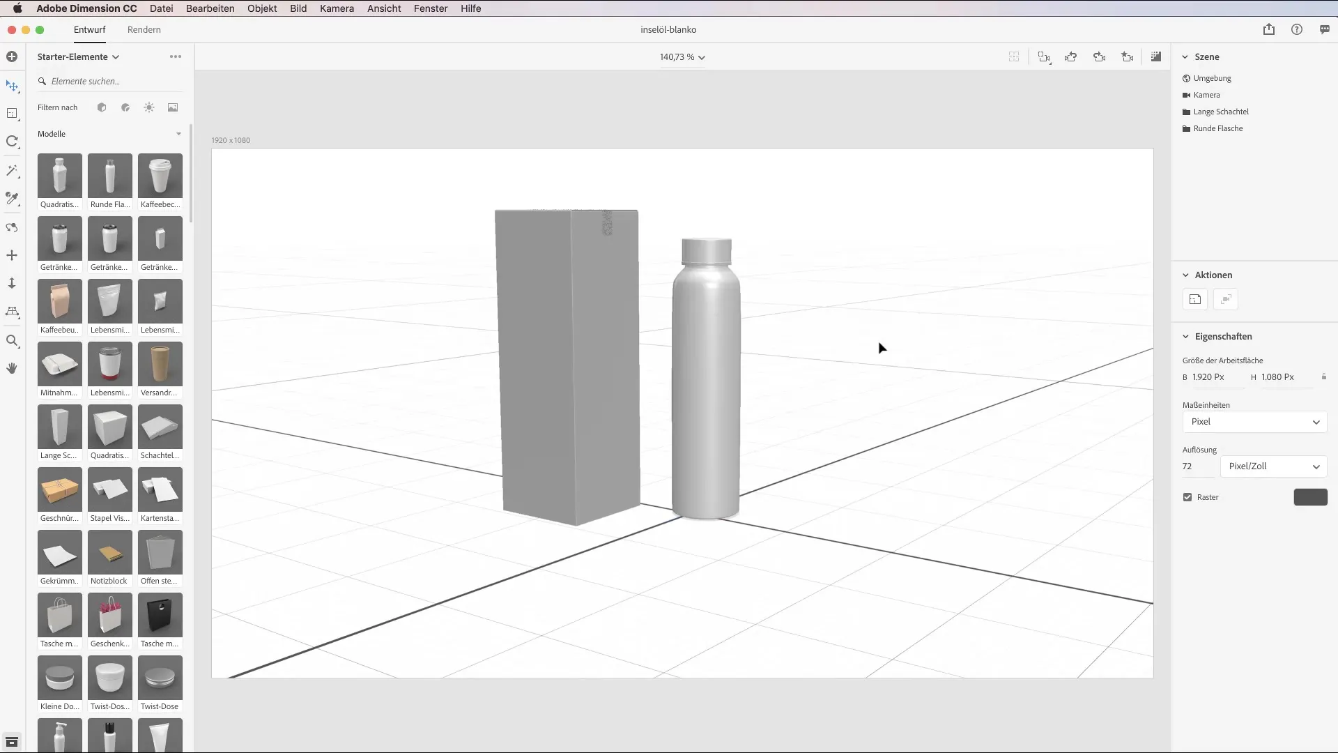 To further develop the idea, create a copy of the bottle, place it above the first, and rotate it by 90 degrees. This adds a dynamic component to your still life. Drag the bottle to the right position so that it doesn't "sink" into the ground.