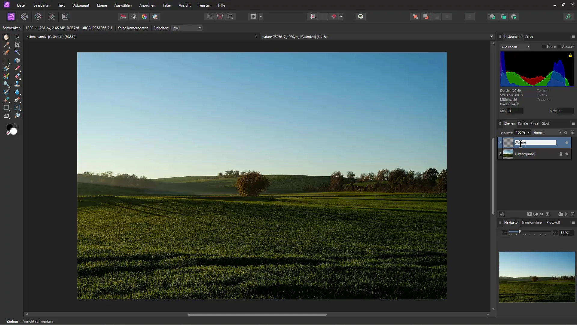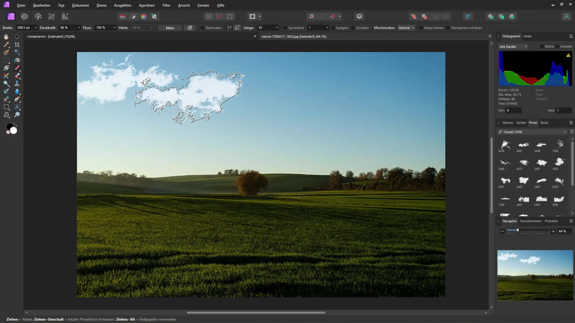 First, you can start by adding clouds to your image. Open Affinity Photo and load your image.
