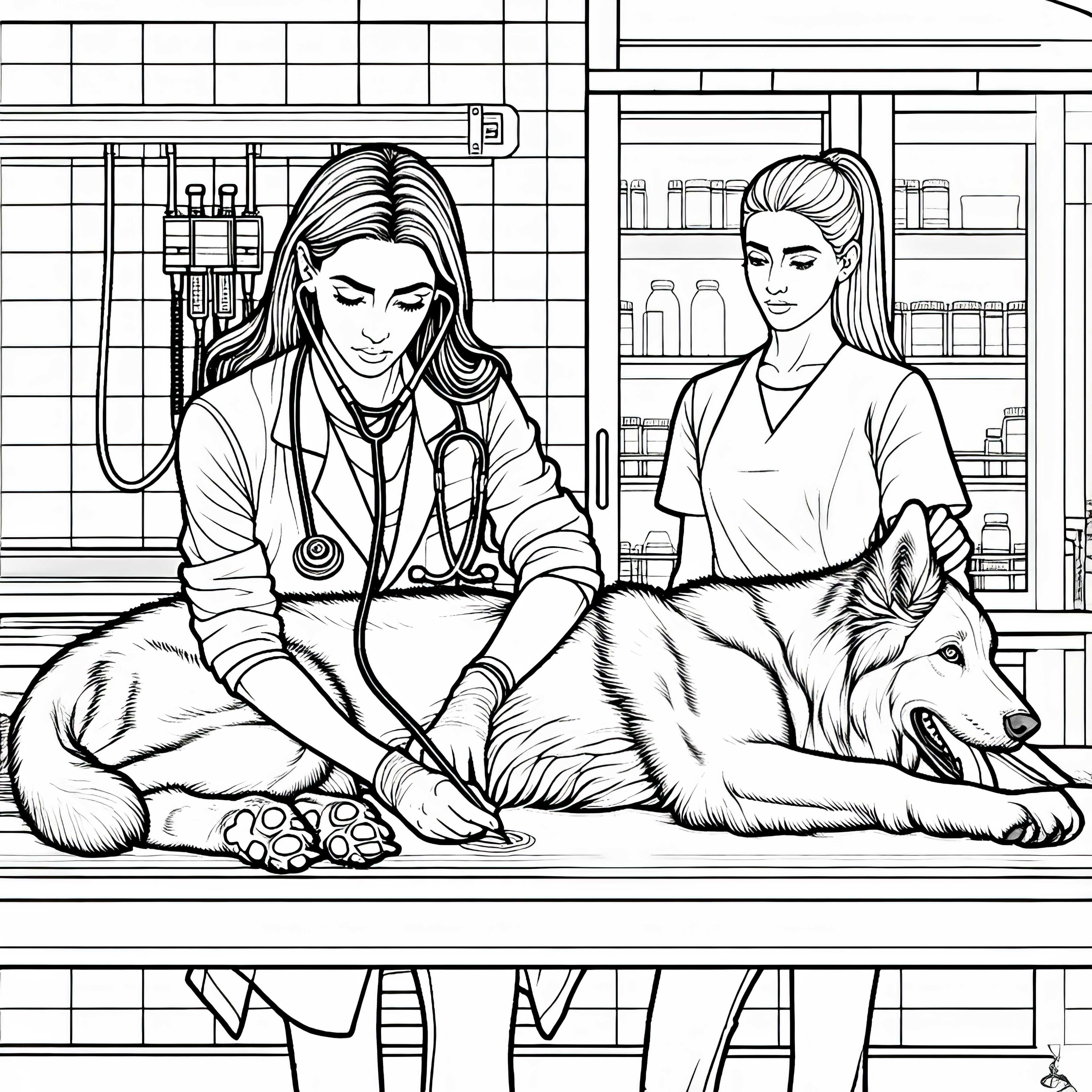 Plantilla para colorear veterinaria - Rica en detalles y gratuita