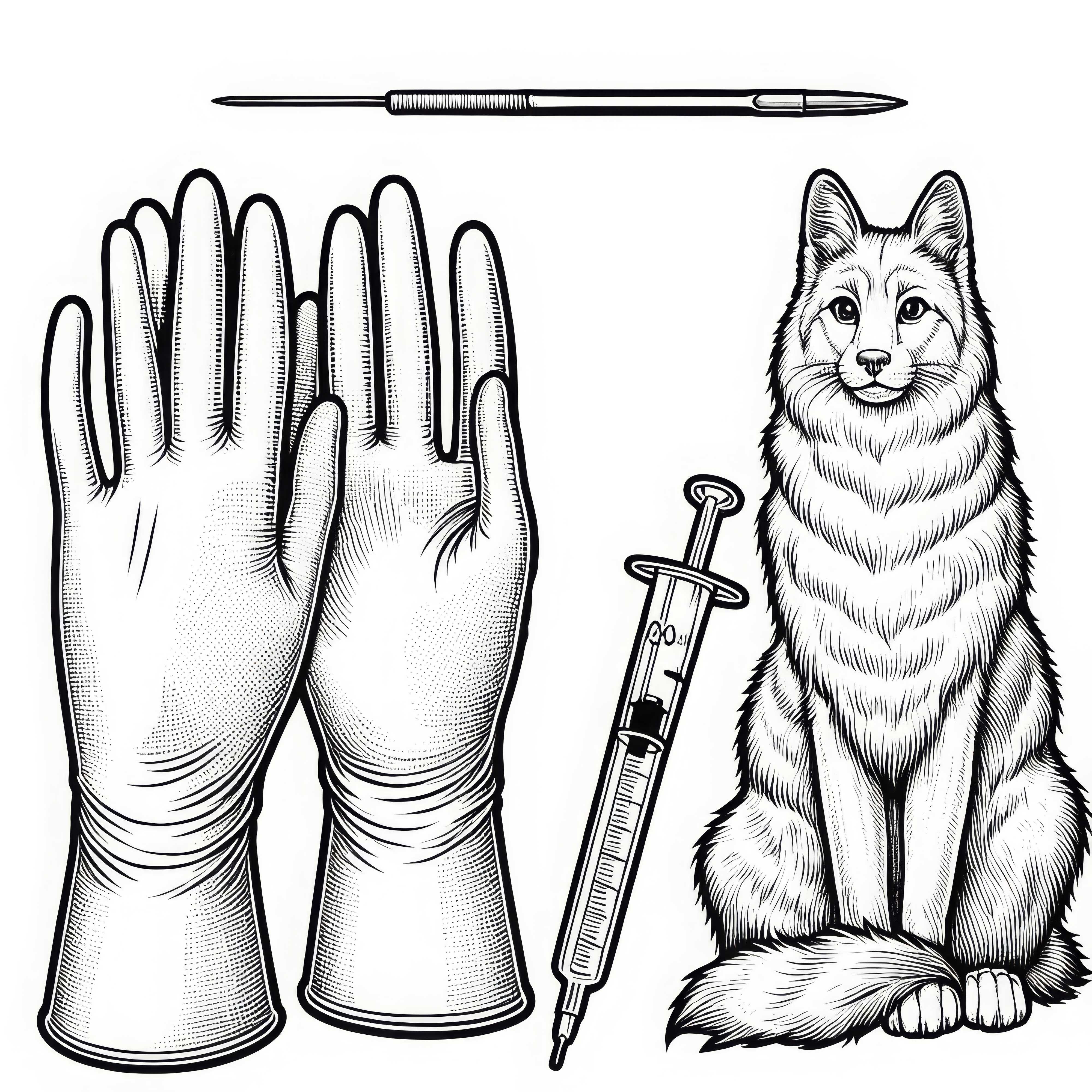 Veterinaria vacuna a un gato en la mesa de examen - Plantilla para colorear detallada y gratuita