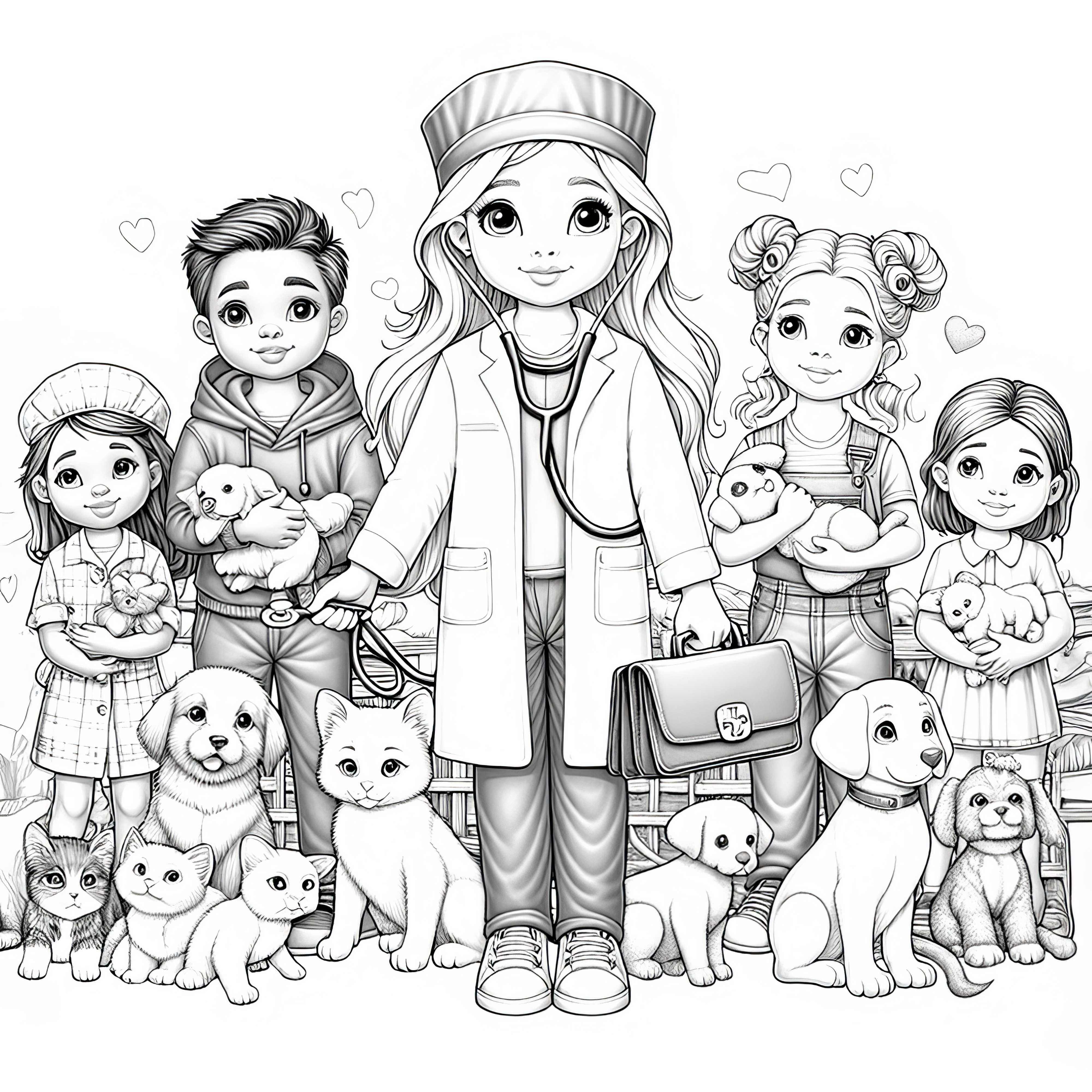 Plantilla para colorear veterinaria - Rica en detalles y gratuita