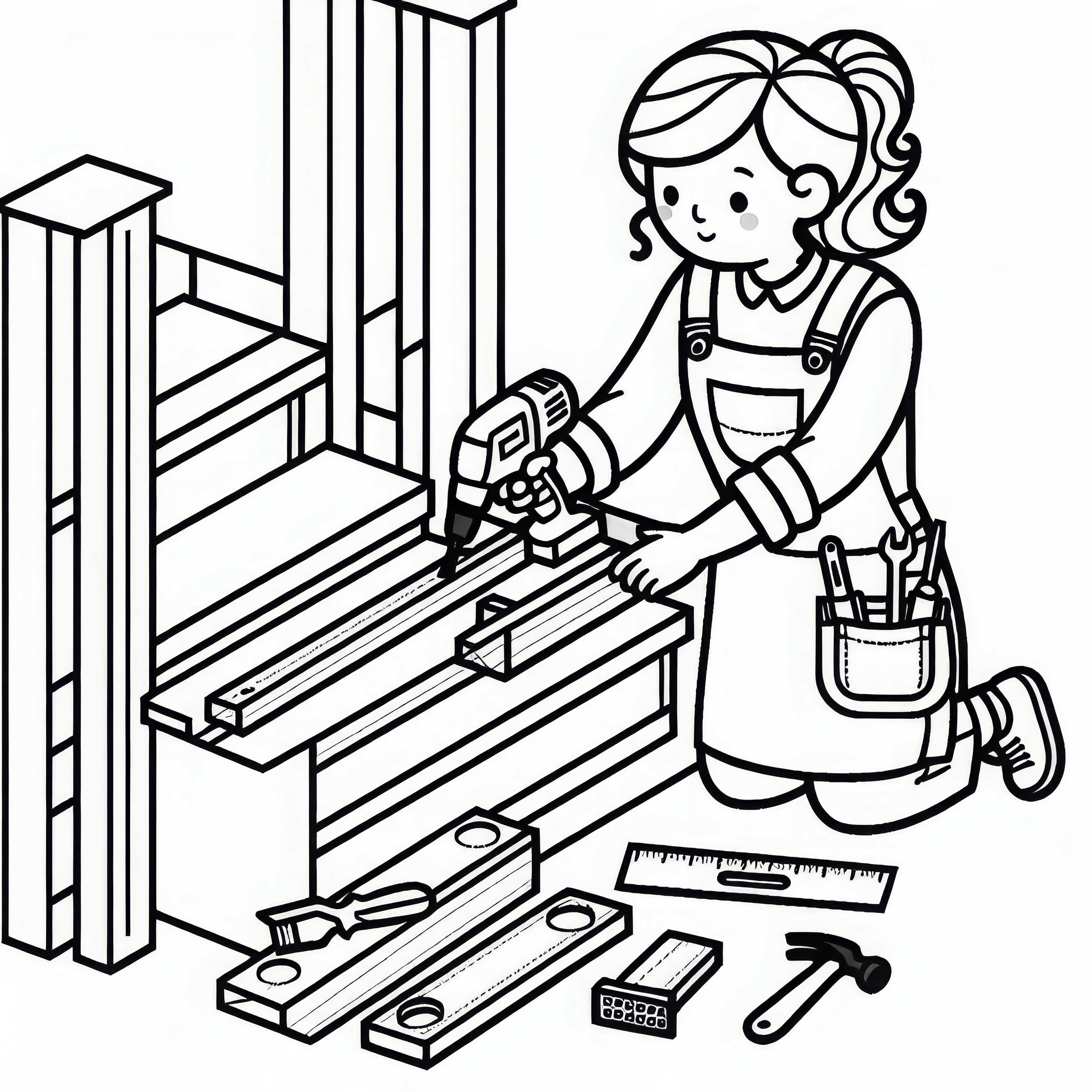 La carpintera fabrica muebles de madera en el taller - Dibujo para colorear gratuito