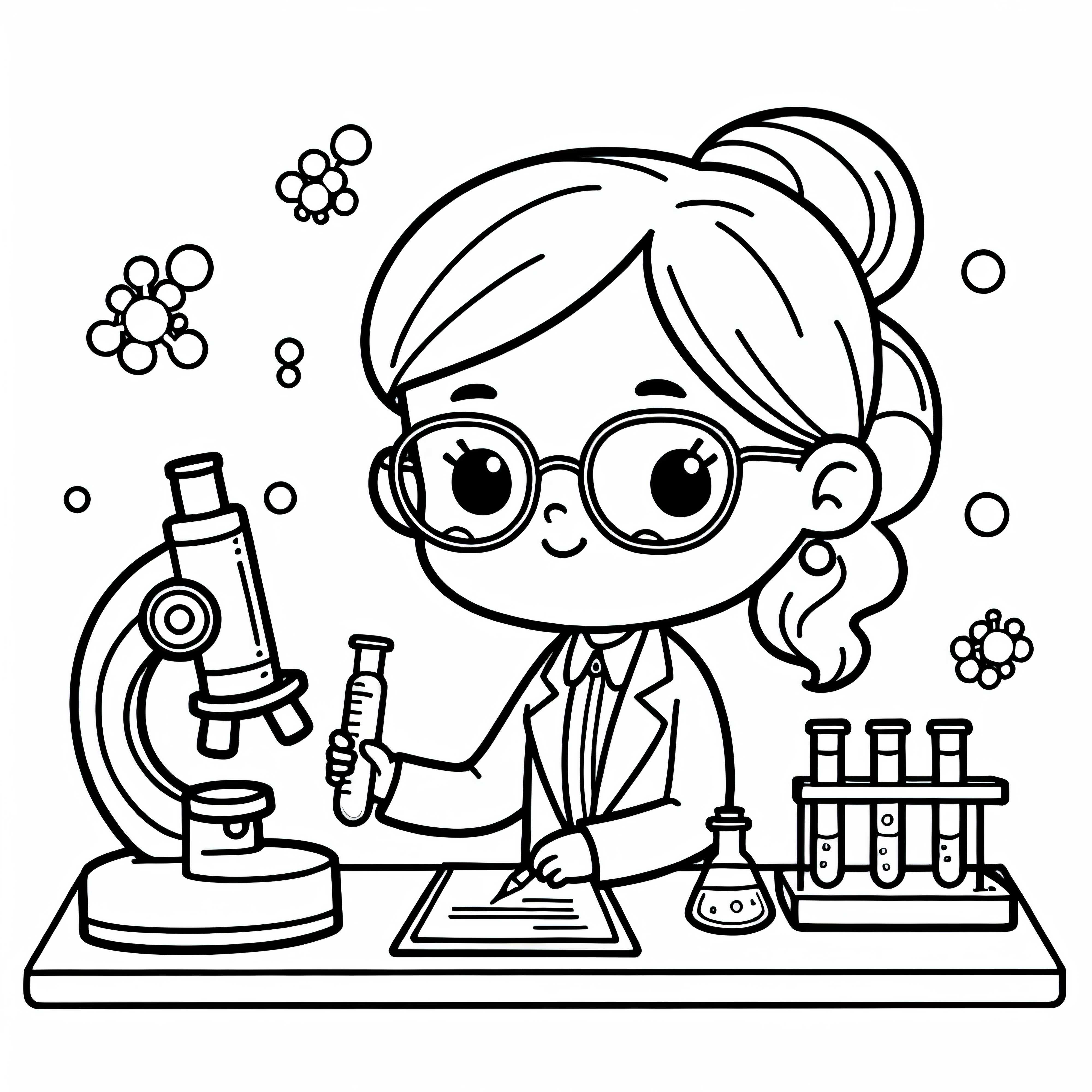 Científica que escribe notas en el diario de laboratorio - Plantilla para colorear gratis