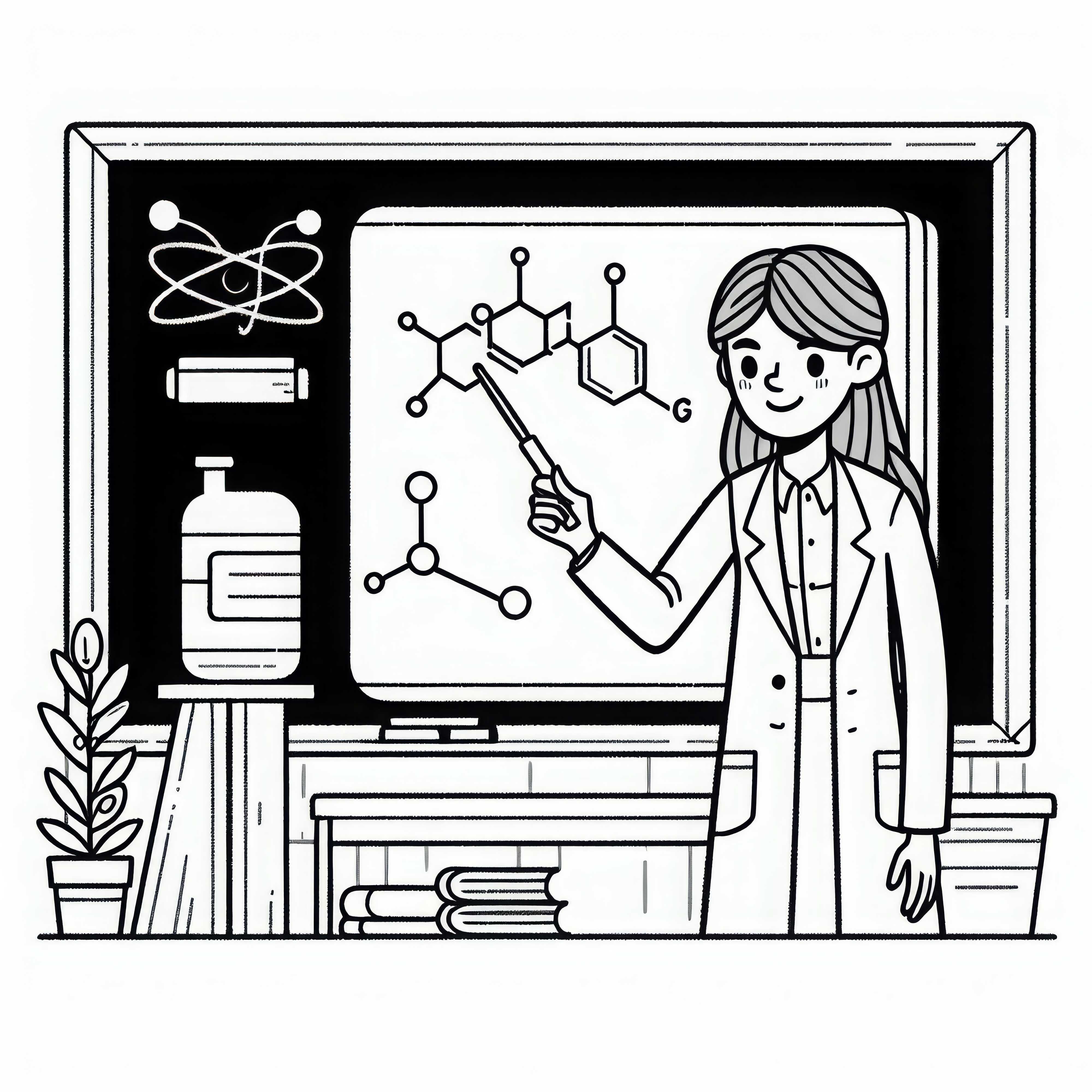 Los científicos desempeñan un papel importante en nuestra sociedad. Exploran los secretos del universo, la naturaleza y la tecnología. A menudo trabajan en áreas especializadas, como biología, química o física. Su tarea es obtener nuevos conocimientos y cuestionar teorías existentes. La científica en nuestra imagen para colorearmuestra un momento cotidiano de su vida profesional, en el que explica un tema complejo en una pizarra de manera clara. Curiosamente, los científicos a menudo utilizan diferentes métodos y tecnologías modernas para probar sus hipótesis. No son solo teóricos, sino también investigadores prácticos que realizan experimentos y analizan datos.