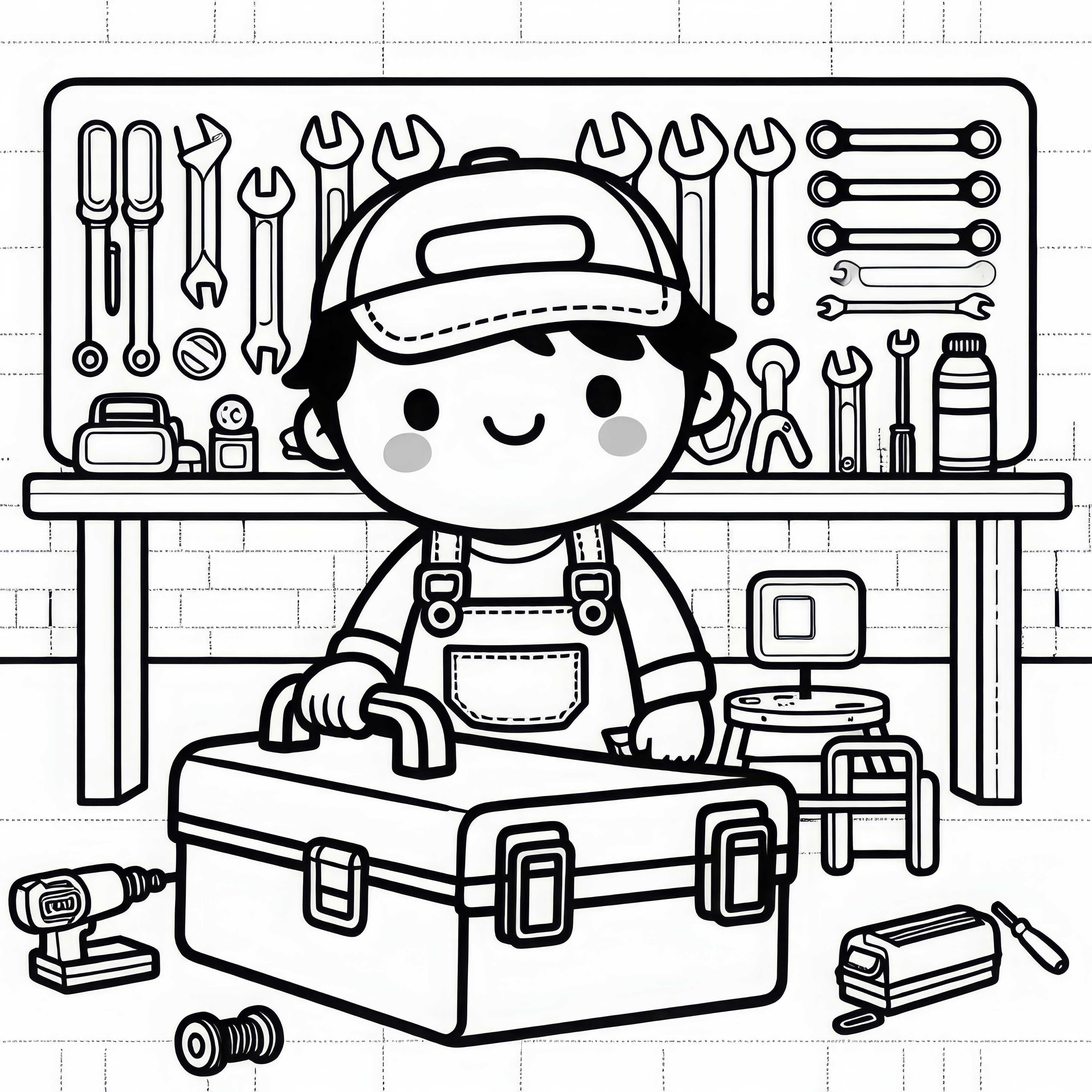 Caja de herramientas con diversas herramientas para mecánicos – Plantilla para colorear gratuita