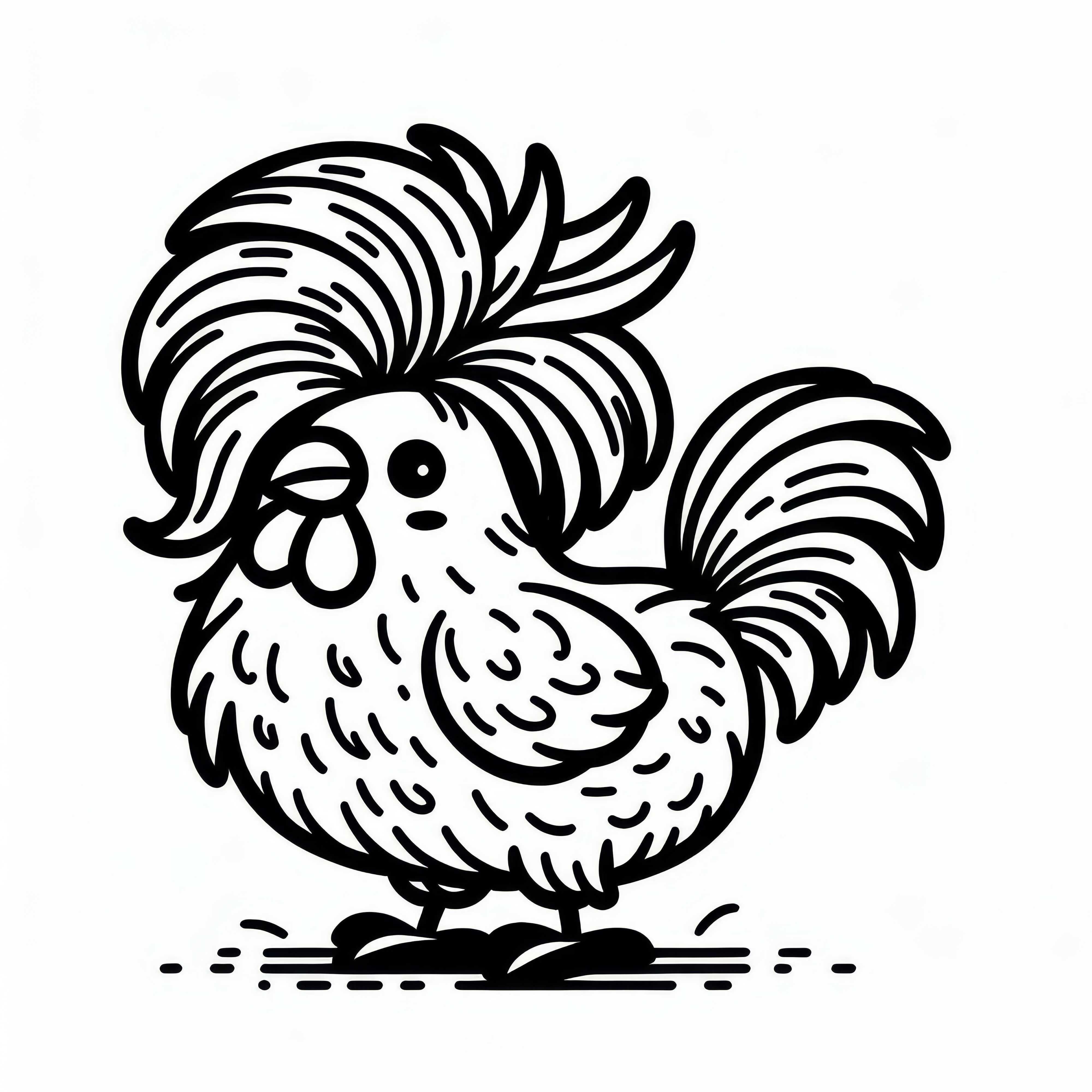 Pollo con peinado divertido: Plantilla para colorear para descargar (Gratis)
