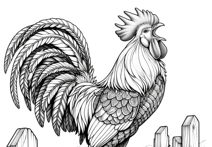 Gallo orgulloso canta: Imagen para colorear realista (Gratis)