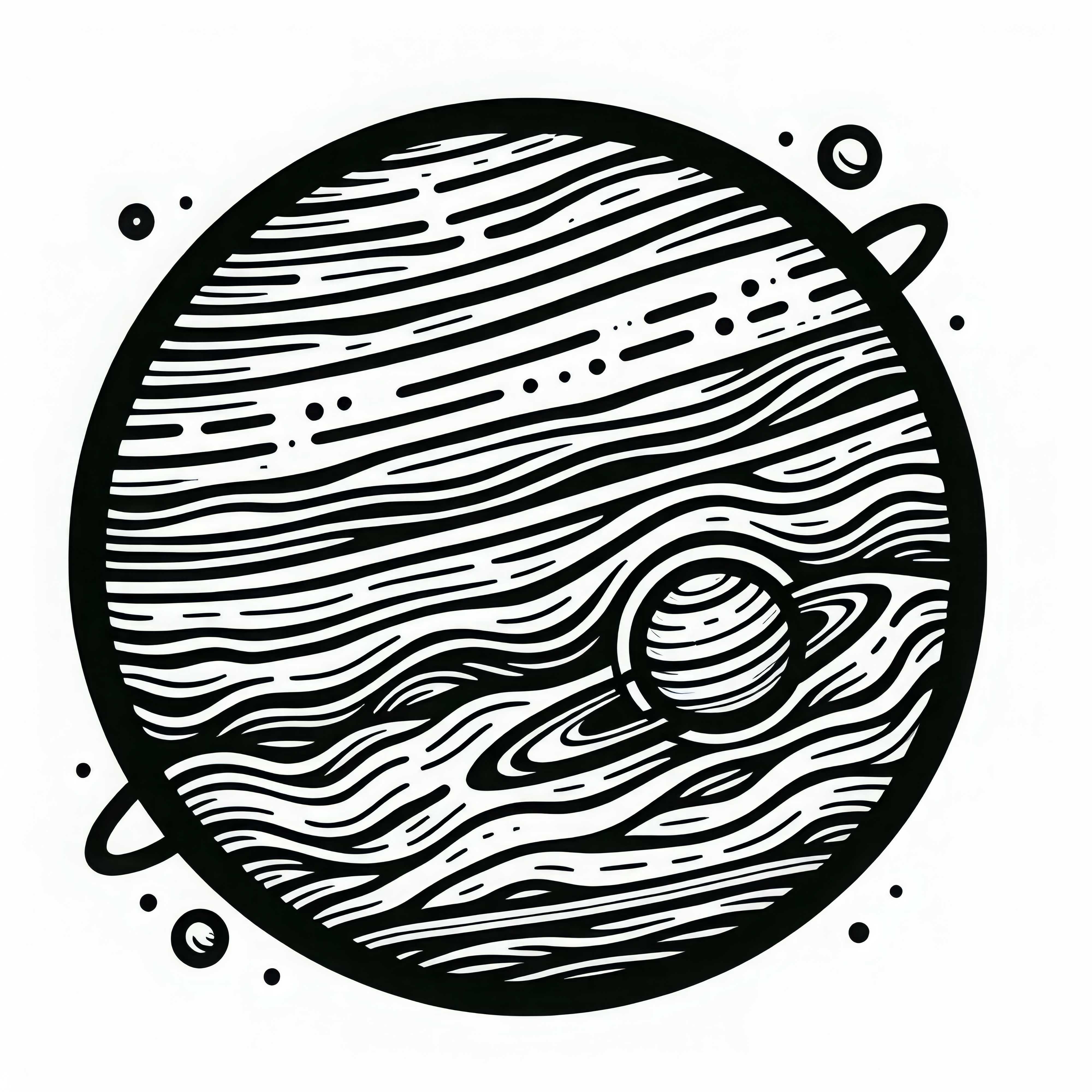 Júpiter es el planeta más grande de nuestro sistema solar y es conocido por su impresionante tamaño y sus numerosos satélites. Es un gigante gaseoso y posee una atmósfera densa compuesta de hidrógeno y helio. Una de las características más conocidas de Júpiter es la Gran Mancha Roja, una enorme tormenta que ha estado activa durante siglos. Debido a su masa, Júpiter tiene una gravitación enorme que atrae algunos de los cuerpos más pequeños de nuestro sistema solar. Curiosamente, Júpiter tiene más de 79 lunas conocidas, incluidas las cuatro más grandes: Ío, Europa, Ganimedes y Calisto. Estas lunas son mundos fascinantes por derecho propio y ofrecen numerosos misterios que valen la pena descubrir. Si buscas más imágenes para colorear sobre Júpiter, echa un vistazo a nuestra selección de imágenes para colorear de Júpiter.