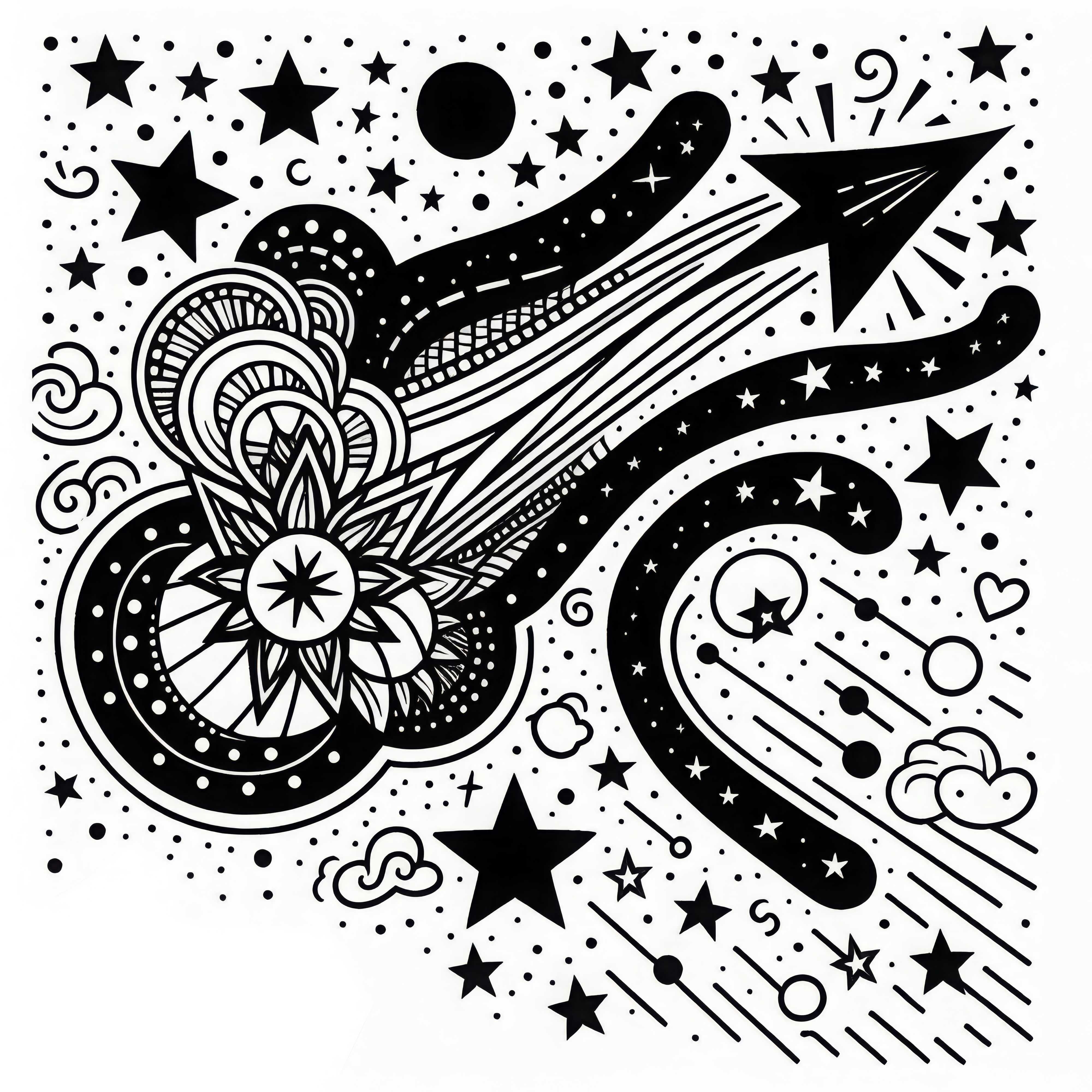 Las estrellas fugaces son fenómenos celestiales fascinantes que ocurren cuando pequeñas partículas del espacio entran en la atmósfera terrestre y se incineran. A menudo aparecen como rayas brillantes en el cielo nocturno y llaman la atención de muchos espectadores. Estos pequeños meteoritos pueden alcanzar velocidades de hasta 100,000 km/h y ofrecen un espectáculo espectacular. Las partículas de las que están compuestas las estrellas fugaces provienen originalmente de cometas o asteroides y pueden variar en diferentes tamaños. En muchas culturas, se consideran a las estrellas fugaces como portadoras de suerte; a menudo existe la tradición de pedir un deseo al ver una. La imagen para colorear de una estrella fugaz no solo aporta alegría al proceso creativo, sino que también invita a reflexionar sobre las maravillas del universo. Si deseas descubrir más imágenes para colorear sobre el tema de la astronomía, consulta nuestra selección de imágenes de estrellas para colorear.