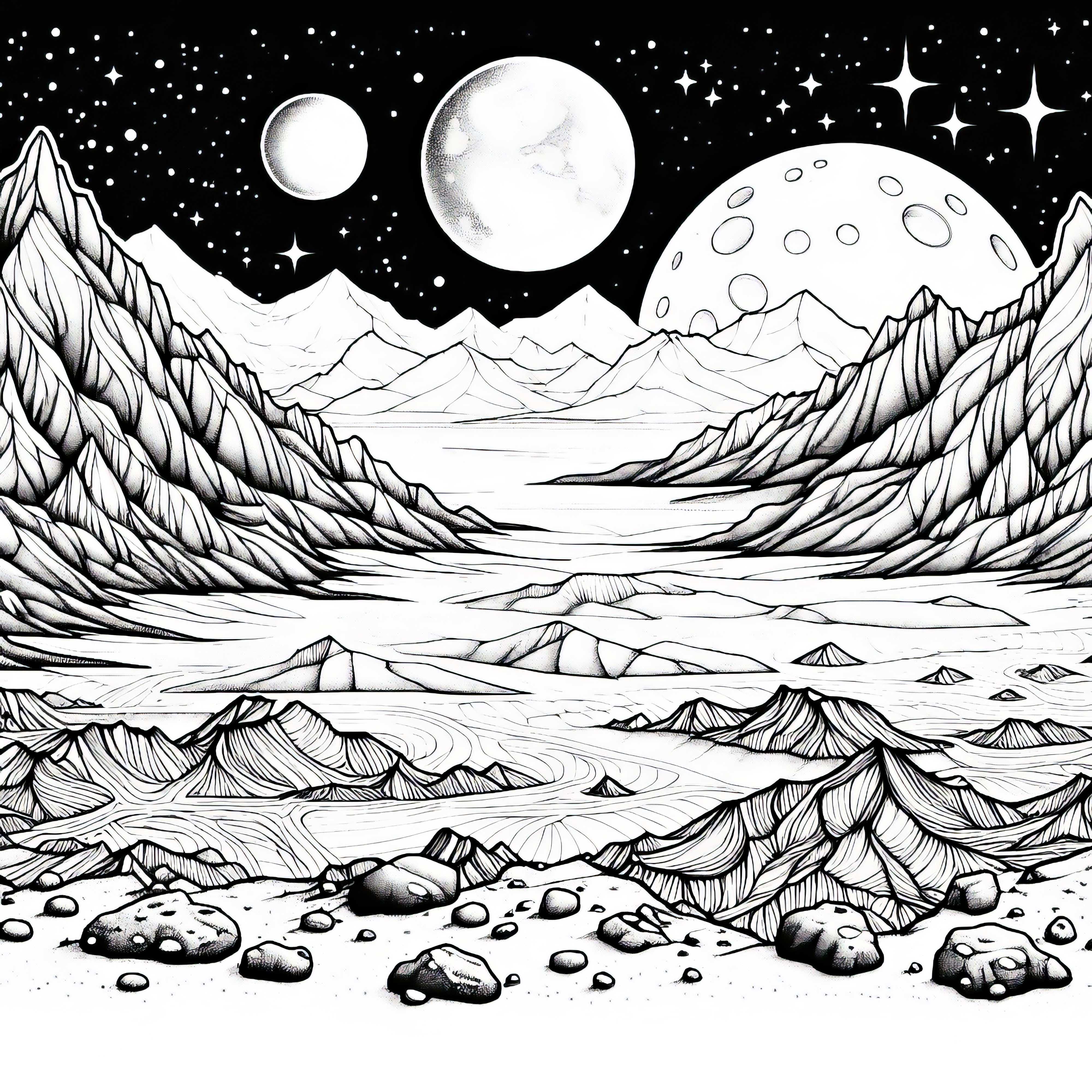 Esta plantilla para colorear muestra la misteriosa superficie de Marte e invita a ser creativo. Ya sea para tu hijo, para una tarde de relajación o como parte de un proyecto escolar – la imagen es adecuada para todos los que disfrutan de colorear. Puedes descargar la imagen gratis y puedes imprimirla tanto offline como colorearla online. ¡Haz clic ahora para descargar la imagen para colorear y darle un brillo creativo a tu obra!