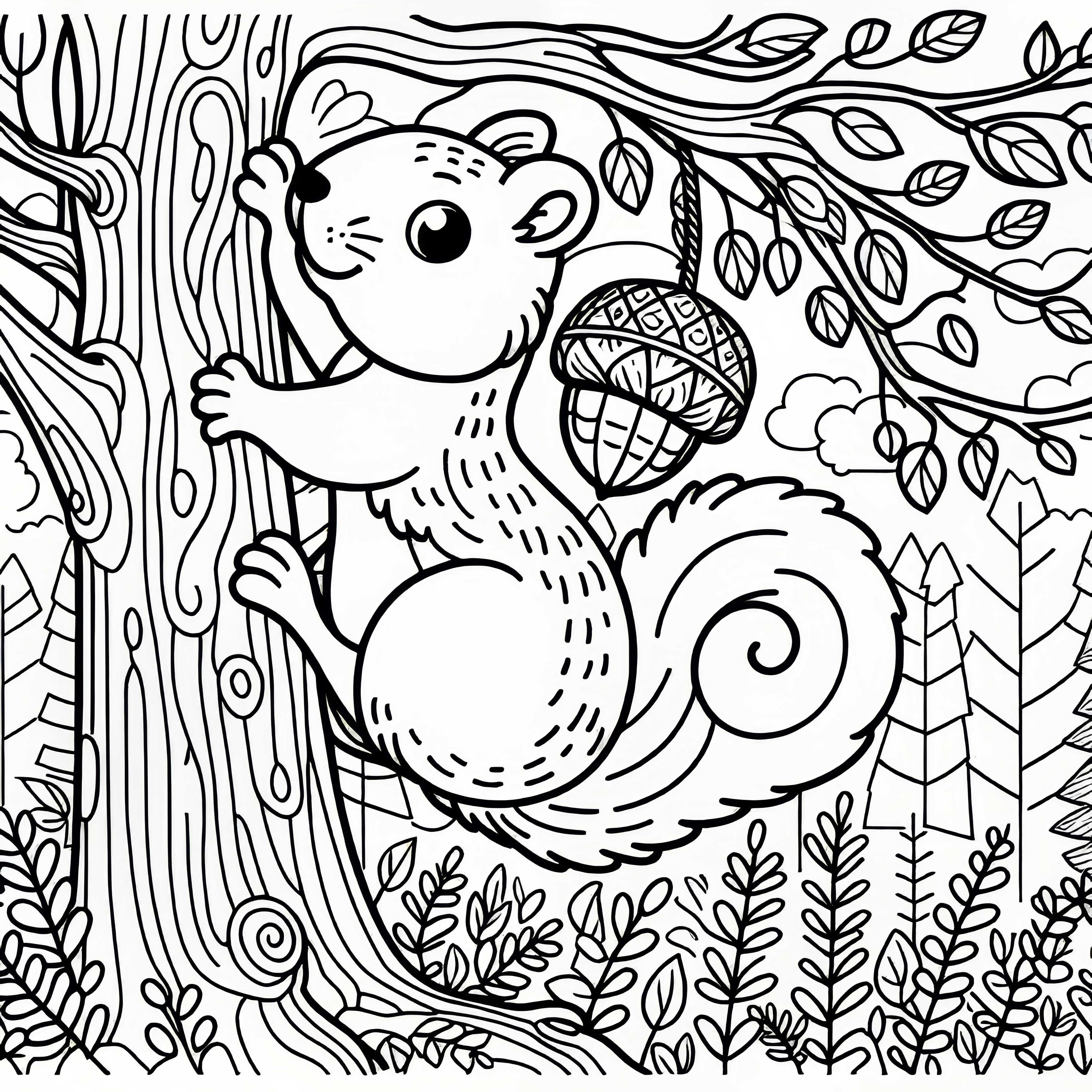 Joven con bellotas recolectadas plantilla para colorear otoño gratis