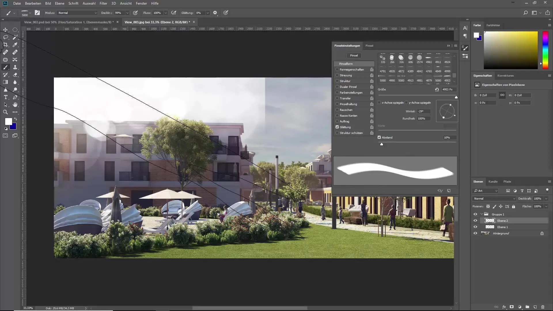 Si tienes bordes duros en tu imagen, es momento de limpiarlos. Agrega una máscara de capa al grupo y utiliza un pincel suave para difuminar cuidadosamente los bordes duros. Con esta técnica puedes hacer las transiciones más fluidas y que los efectos de Bokeh parezcan más realistas.