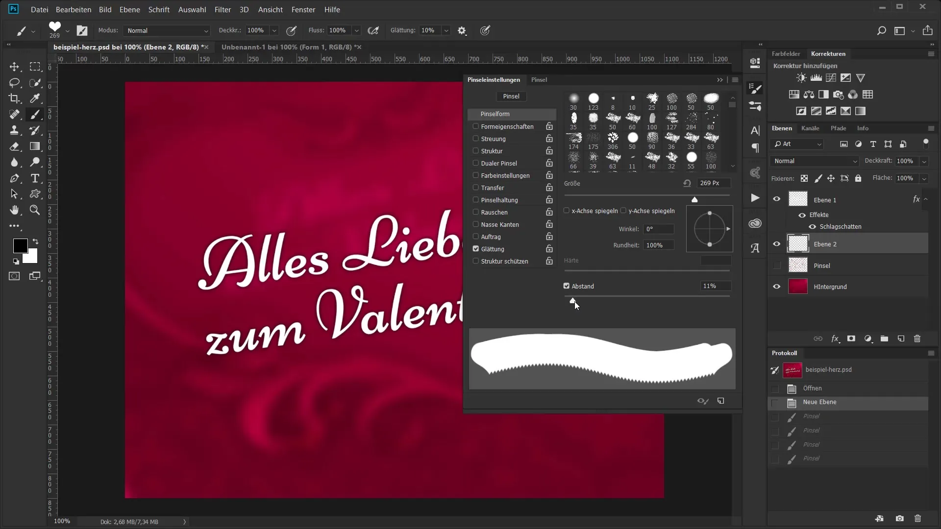 Los ajustes de pinceles y Jitter ofrecen un poderoso método para crear motivos duplicados como corazones de forma rápida y efectiva. Ajustando hábilmente los parámetros, puedes jugar con variaciones en tamaño, color y posición.