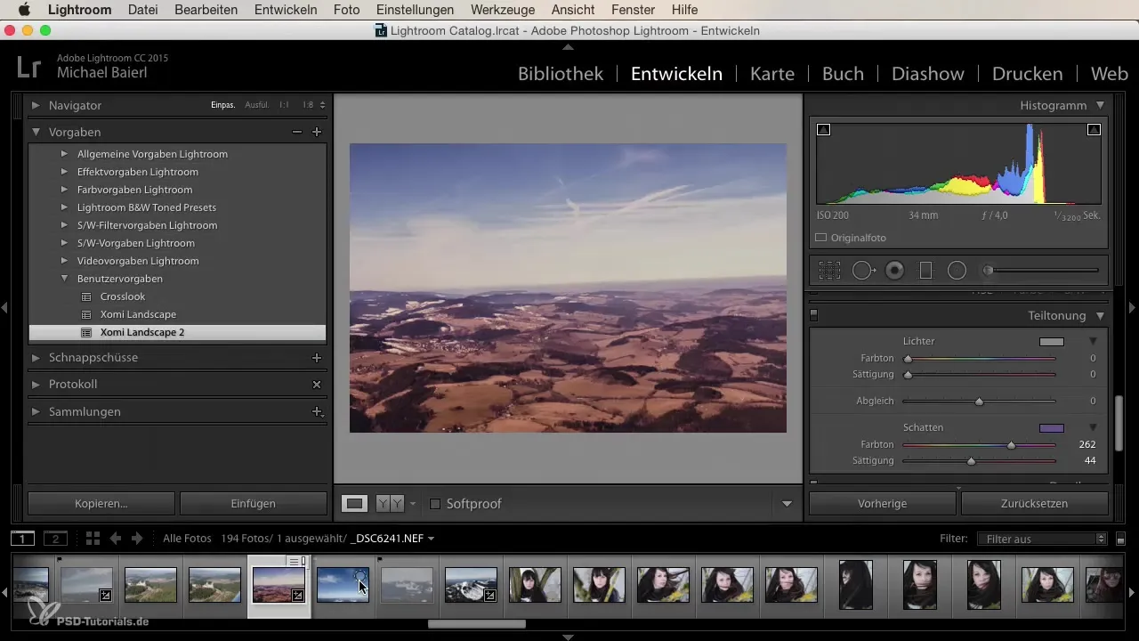 Ahora puedes aplicar tu nuevo preset en cualquier otro momento a otras imágenes. Esto mejora significativamente la eficiencia de tu trabajo, especialmente si editas series que deben parecer similares.