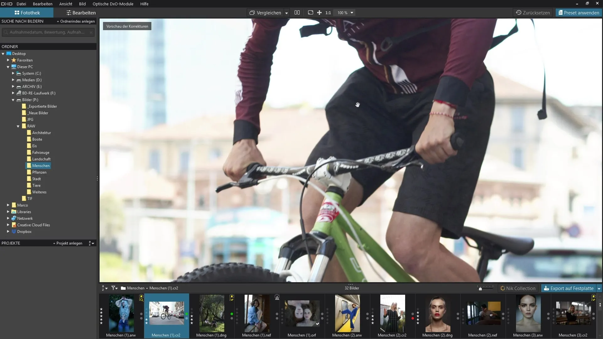 Para navegar rápidamente a través de tus imágenes, es importante entender la estructura de carpetas que tienes en tu disco duro. En la barra lateral izquierda de DxO PhotoLab verás la lista de carpetas, que refleja la estructura de tu disco duro. Aquí puedes cambiar fácilmente entre las diferentes carpetas haciendo clic en el pequeño triángulo para expandir o contraer una carpeta. Esto te permite ver las imágenes contenidas en ella.
