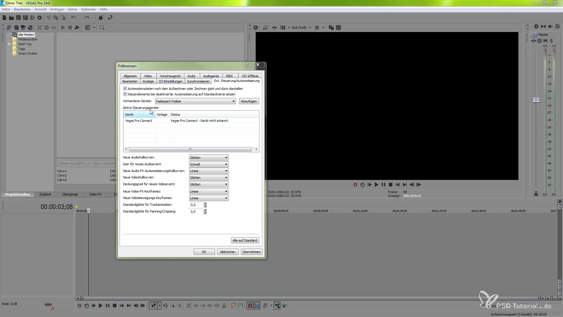 Desplázate hacia abajo en la sección de preferencias hasta que llegues a "interferencias externas". Aquí puedes activar la automatización para permitir la conexión de dispositivos externos como VEGAS Pro Connect.