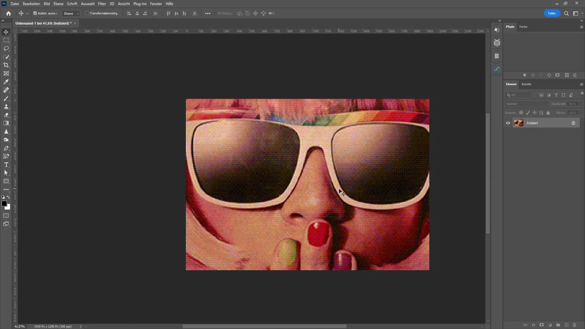 Primero, abre Photoshop y carga la imagen con la que deseas trabajar. Dado que deseas crear el efecto de dither, es importante ajustar inicialmente el tamaño de la imagen para obtener resultados óptimos.