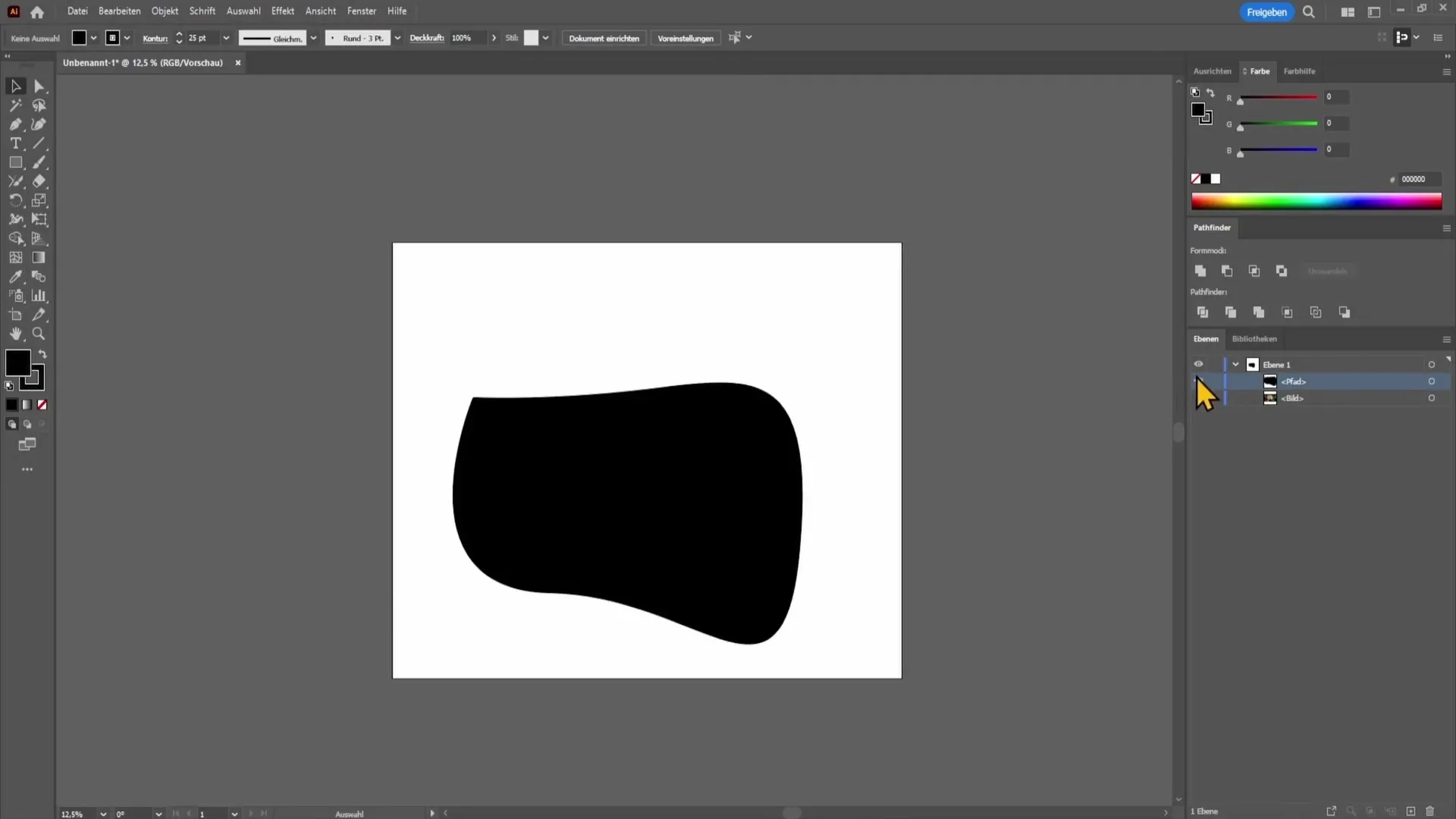 Primero abre Adobe Illustrator y crea un gráfico. Puedes utilizar diferentes herramientas, como la pluma. Dibuja una forma que se ajuste a tus necesidades.