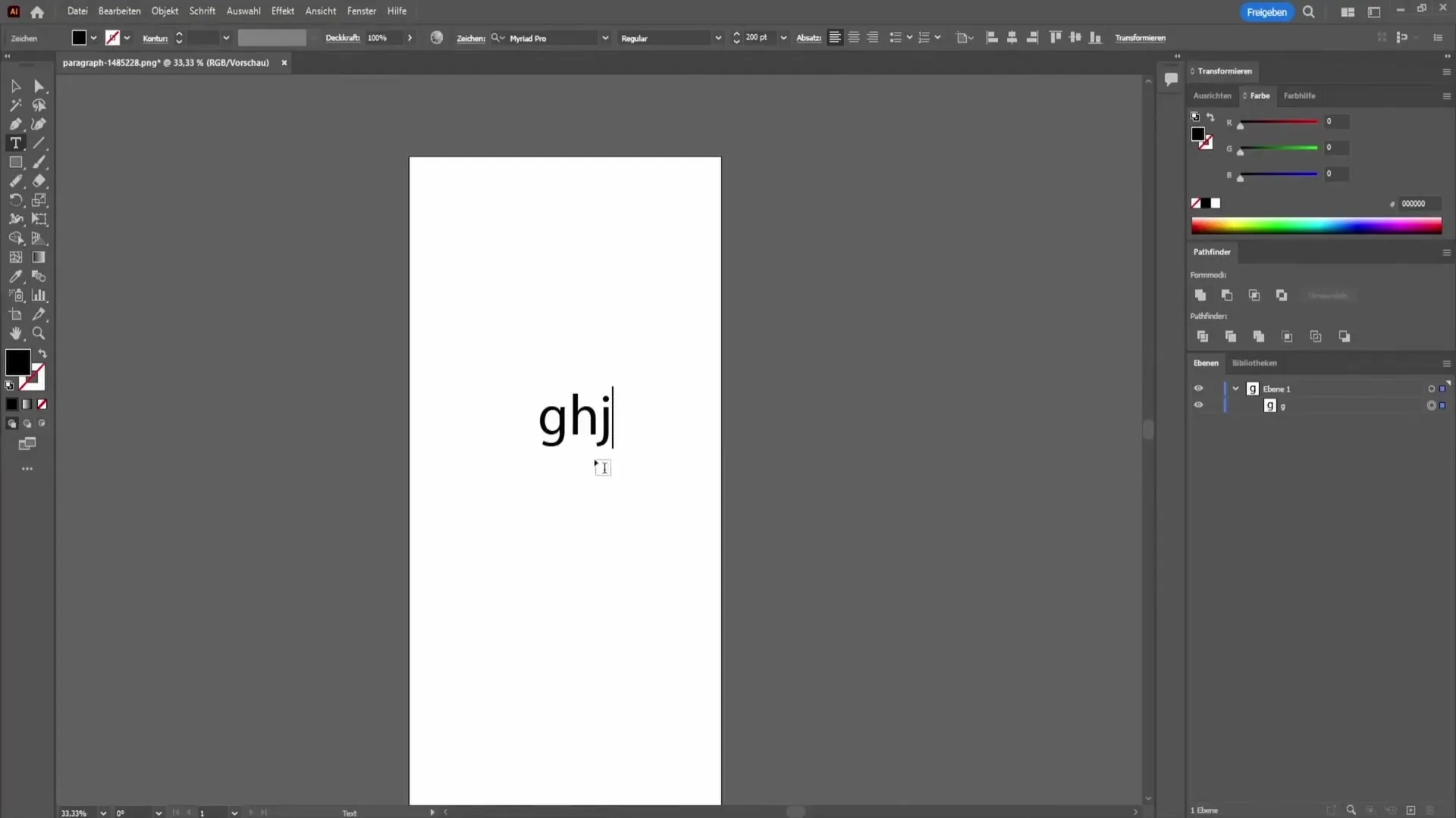 Primero, debes crear un texto. Abre Adobe Illustrator y selecciona la herramienta de texto. Escribe tu texto deseado en un cuadro de texto. Puedes simplemente escribir "Aquí está mi texto". Para aumentar el tamaño del texto, por ejemplo a 600 puntos, selecciona el texto y cambia su tamaño de fuente. Después de completar este paso, deberías ver tu texto del tamaño deseado.