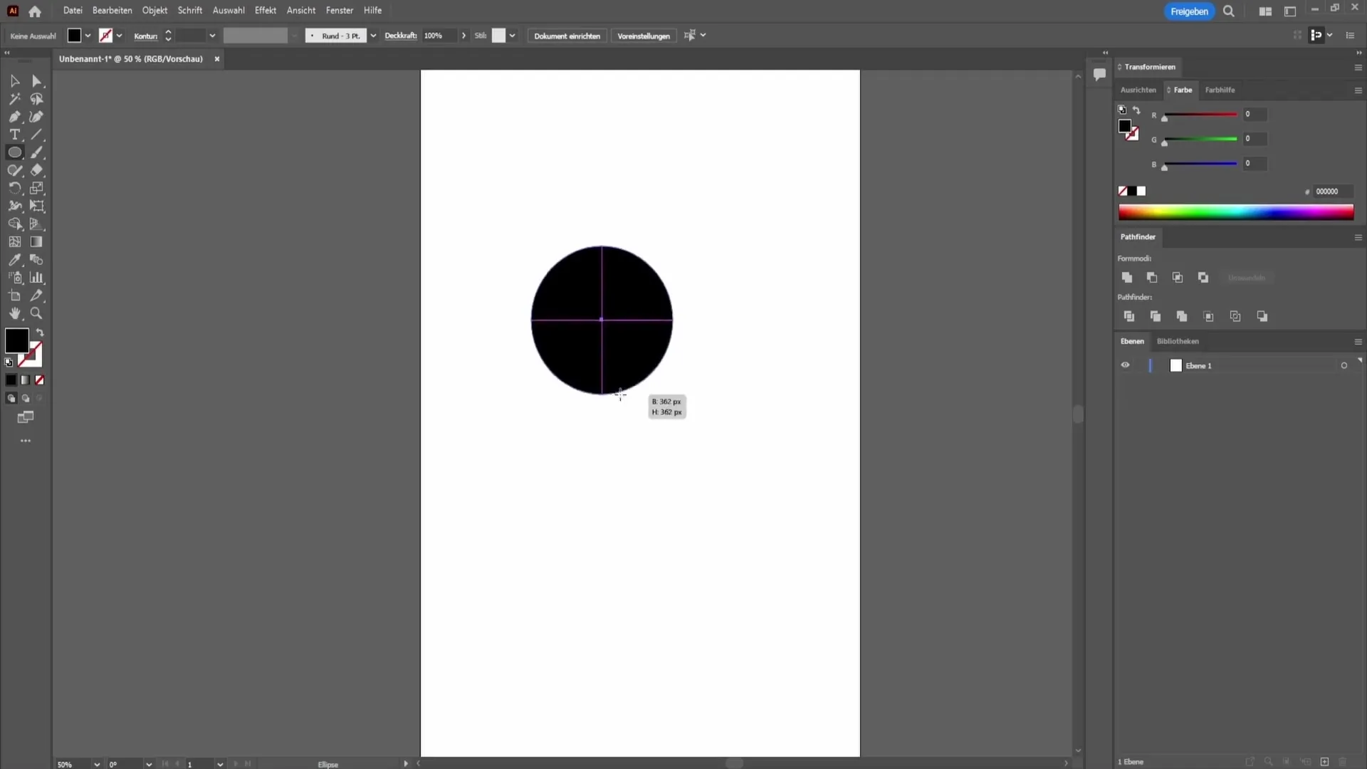 Para crear una media luna, selecciona ambos círculos y ve a la opción Pathfinder (ubicada en el menú Ventana) y elige el símbolo de Substracción. El resultado que verás será una media luna.