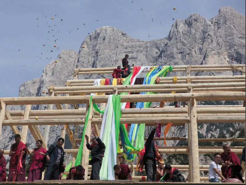 Pero por cierto: merece la pena echar un segundo vistazo al sujeto de esta foto. A primera vista, parece una ceremonia de coronación medieval, pero los monjes están equipados con la tecnología más moderna de cámaras y teléfonos. Realmente saben lo que hacen.