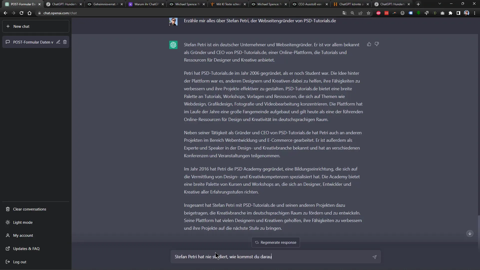 Es importante tener en cuenta que bajo ciertas circunstancias, no toda la información proporcionada por ChatGPT es correcta. Por ejemplo, es posible que la IA muestre detalles incorrectos sobre personas o eventos. Esto se evidenció en mi ejemplo: cuando pregunté a la IA quién es Stefan Petri, inicialmente proporcionó información errónea. Para asegurarte de basarte en información precisa, siempre debes realizar una verificación posterior.