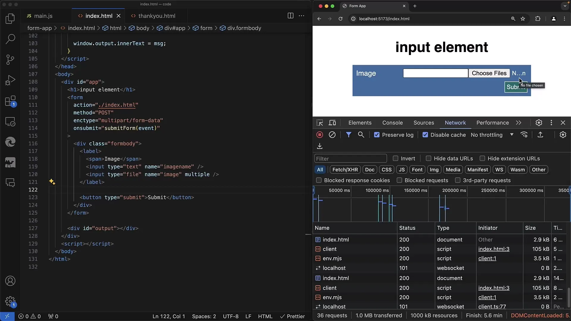Con este Enctype, puedes asegurarte de que el servidor reciba el archivo en sus datos binarios. Al implementarlo, seleccionamos nuevamente nuestro archivo de imagen y enviamos el formulario nuevamente.
