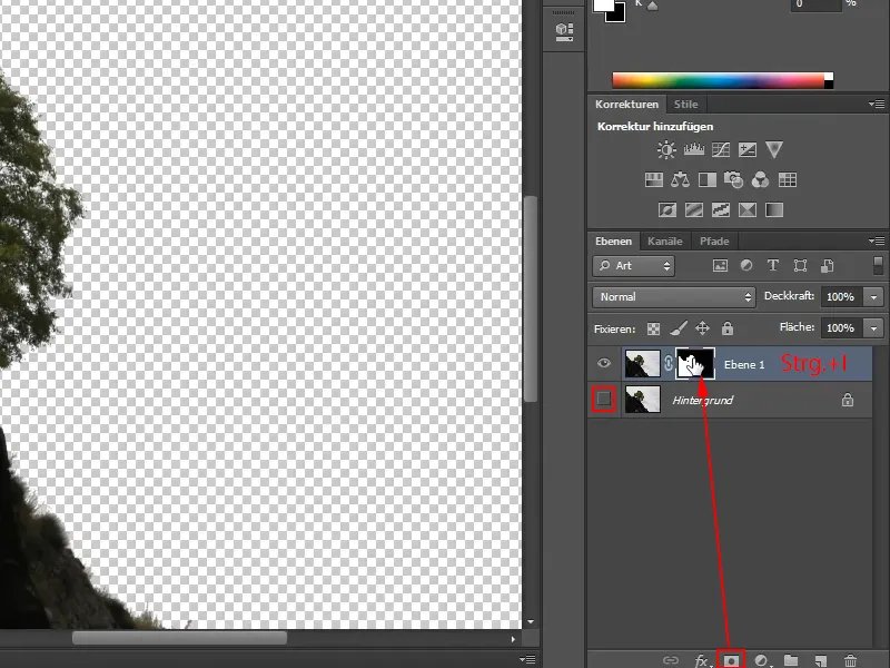 De la misma forma que con la herramienta varita mágica, aquí también creo una máscara de capa, que luego invierto con Ctrl+I.