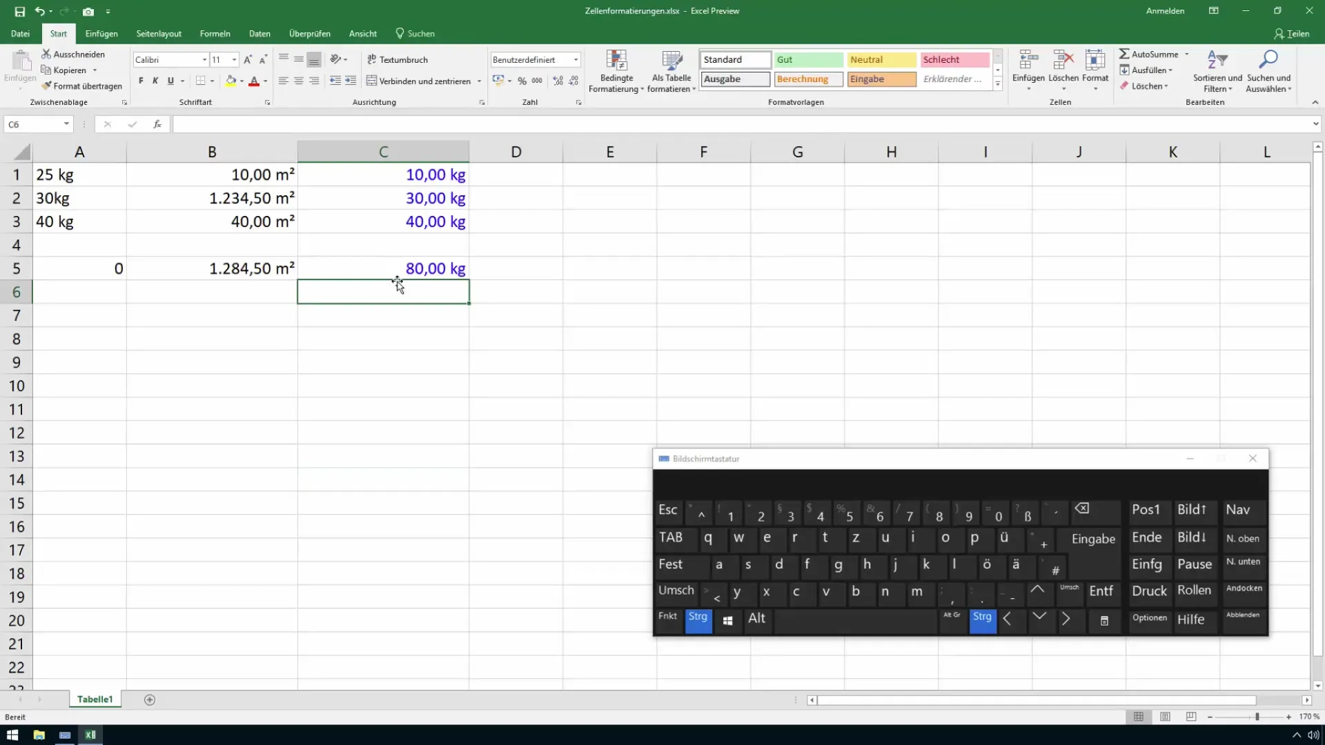 Después de ingresar el número de color y aplicar el formato, deberías poder ver inmediatamente cómo cambian las celdas. En nuestro caso, todas las celdas de la columna C deberían aparecer ahora en un azul intenso. Asegúrate de que los términos de la plantilla de formato también se ajusten en consecuencia.
