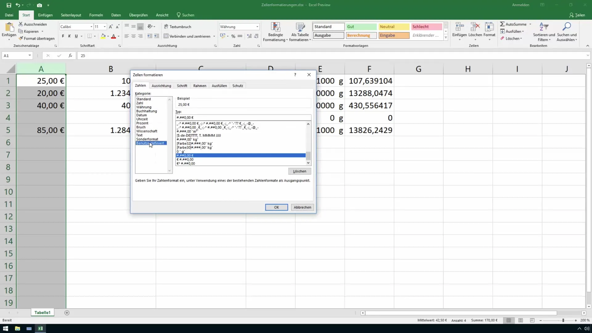 Después de colocar el símbolo de Euro, es posible que quieras formatear el monto para que esté alineado a la derecha del símbolo de moneda. En este caso, puedes usar un asterisco (*) para llenar el espacio entre el símbolo de Euro y los números de forma uniforme.