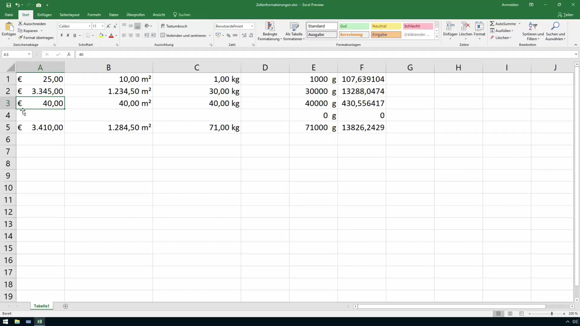 Primero abre tu tabla de Excel y selecciona las celdas que deseas formatear. Por lo general, los datos relevantes están en una lista, por ejemplo, en la columna A. Luego, haz clic en la pestaña "Inicio" y ve a los formatos numéricos. Aquí puedes seleccionar el formato de moneda.