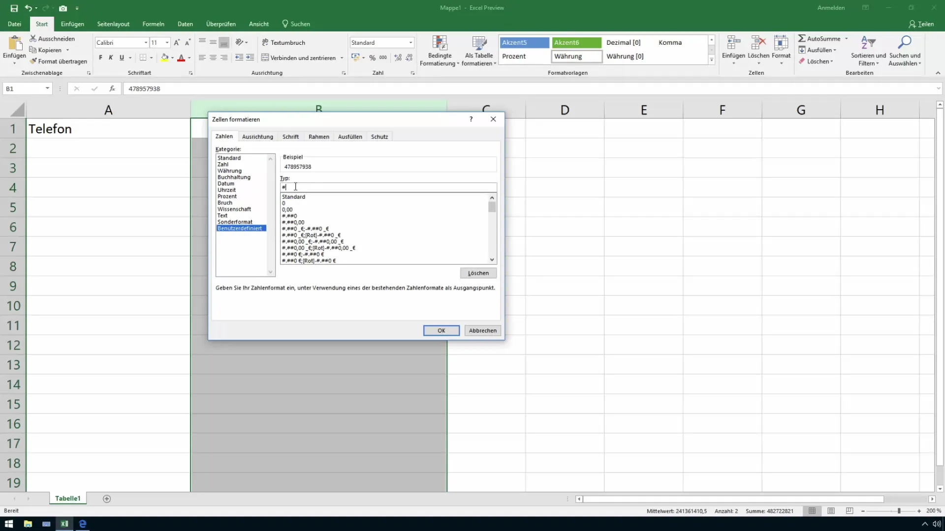Introduce los números correspondientes en las celdas que deseas formatear. Por ejemplo, puedes introducir números de teléfono o códigos postales en las celdas designadas. Asegúrate de introducirlos primero como números normales, ya que luego los formatearás.