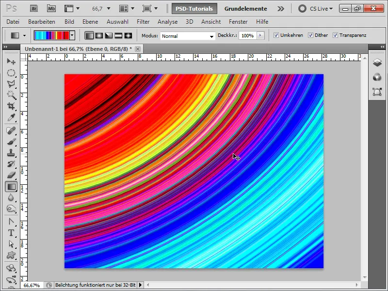 Es importante que cuando entre en la edición de degradados, tenga activada la opción de ruido en el tipo de degradado. Además, puedo ajustar rápidamente un degradado de color diferente a través del parámetro aleatorio.