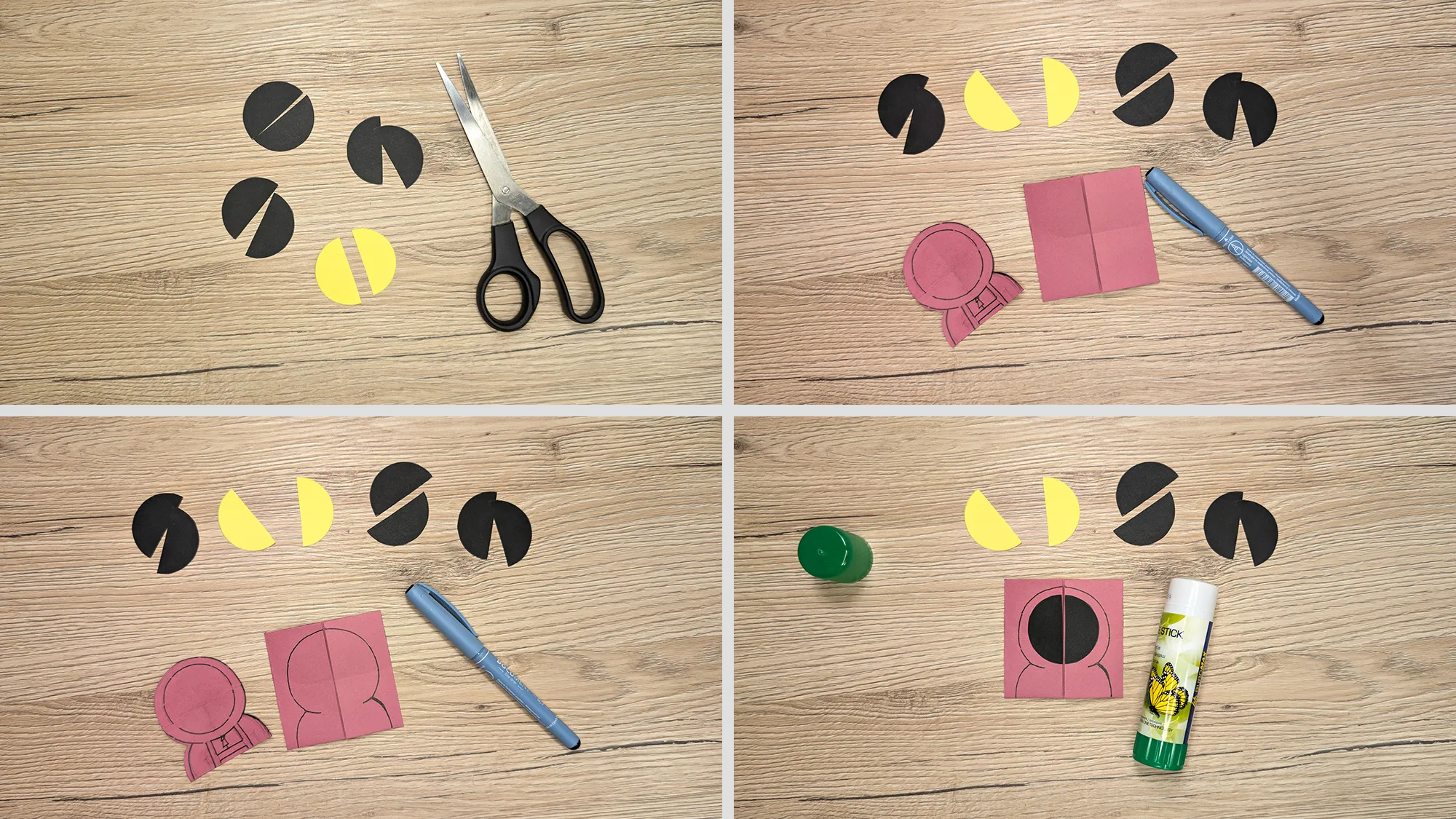 - Must ja kollane paber (sümbolite ja naerunäo jaoks)