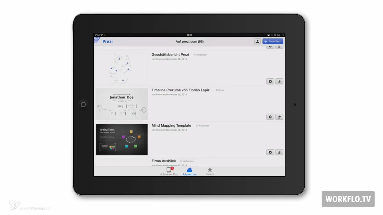 Prezi rakendus on saadaval ka iPadidele, mis teeb esitlemise veelgi paindlikumaks. Et esitada oma esitlust iPadilt, kliki lihtsalt Prezi rakendusele. Seal saad leida oma salvestatud esitused ja valida soovitud. Eeliseks on see, et sinu Prezi avatakse automaatselt esitlusrežiimis, mis lihtsustab alustamist.