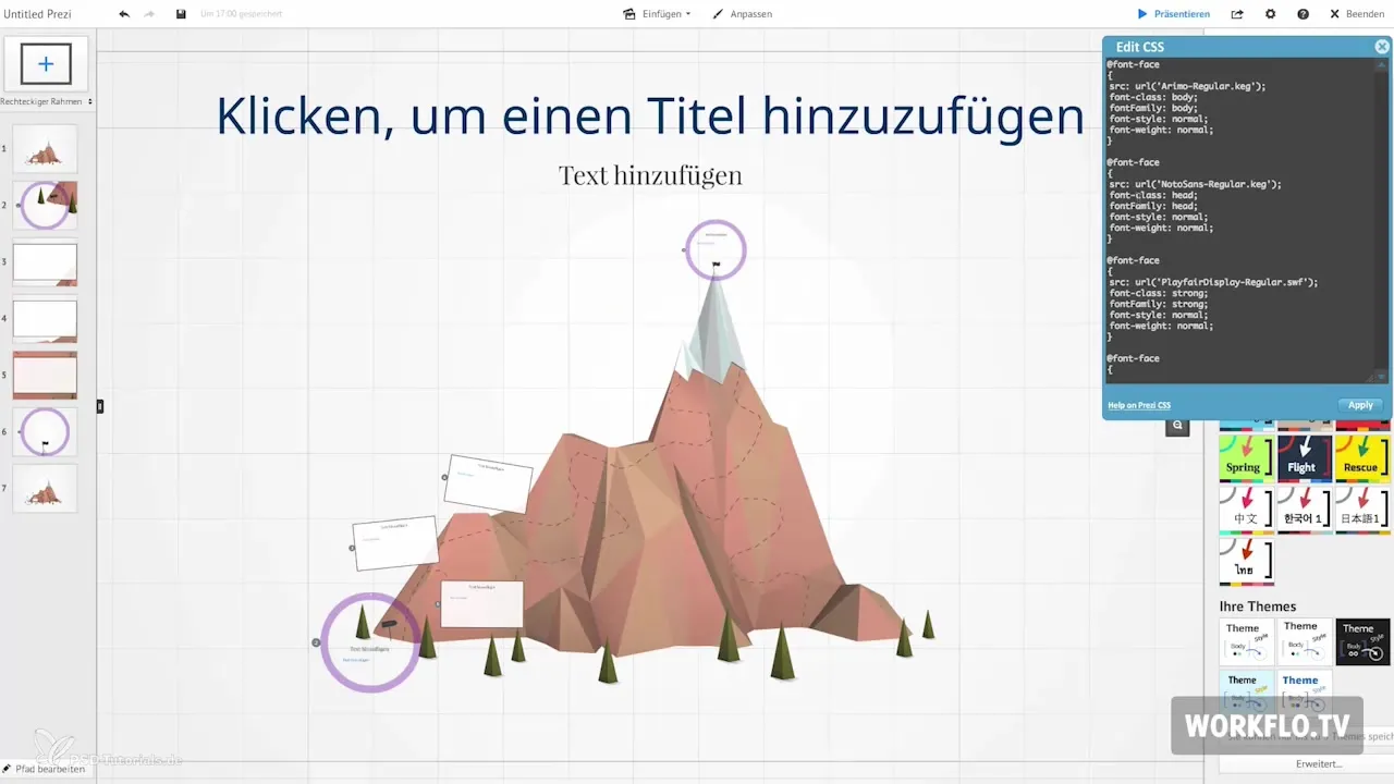 Kas ma saan Prezi-s kasutada välistingimustes fonte?Jah, CSS redaktori kaudu saad lisada ja kasutada välistingimustes fonte.