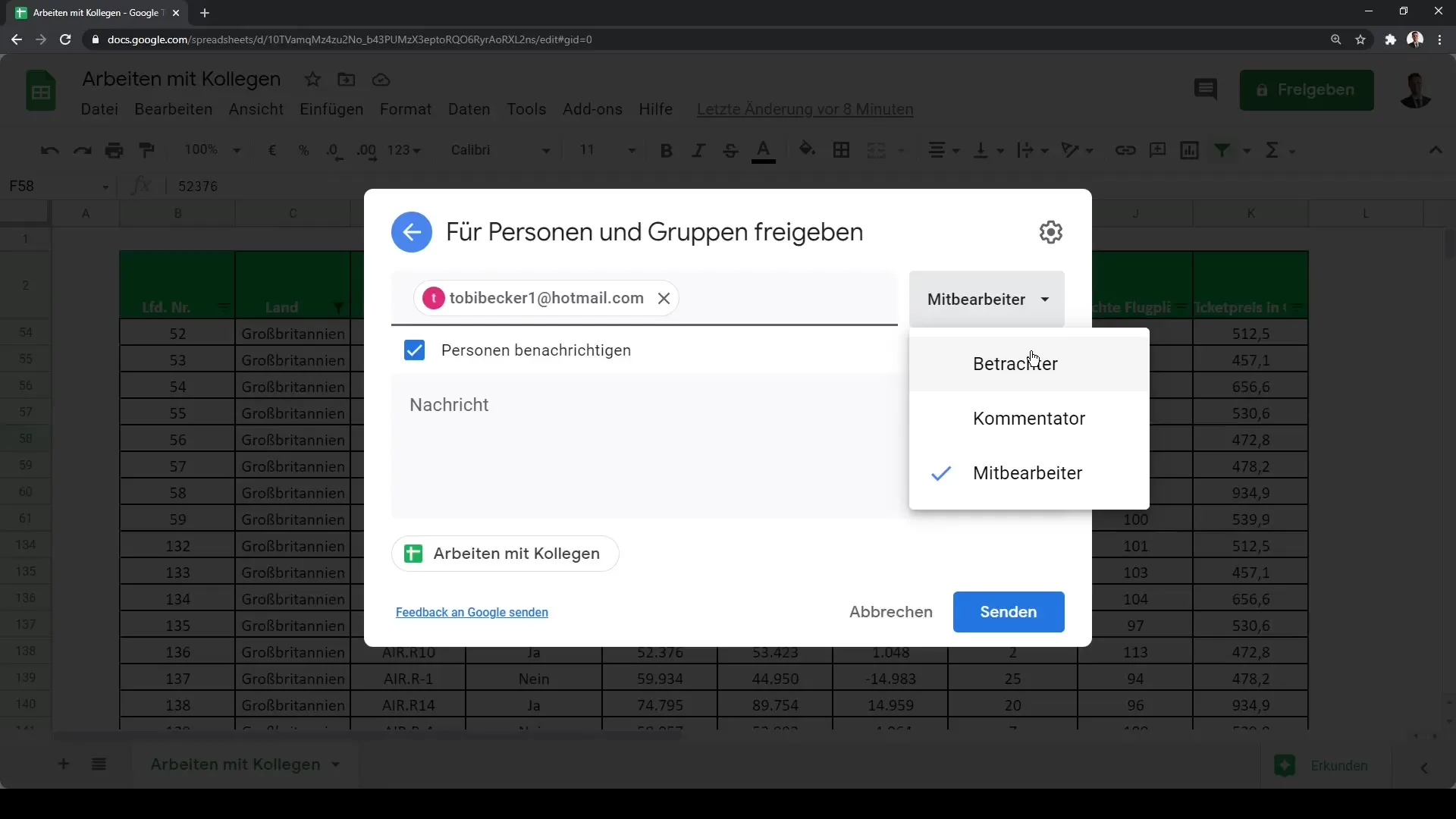Google Sheet'i jagamine