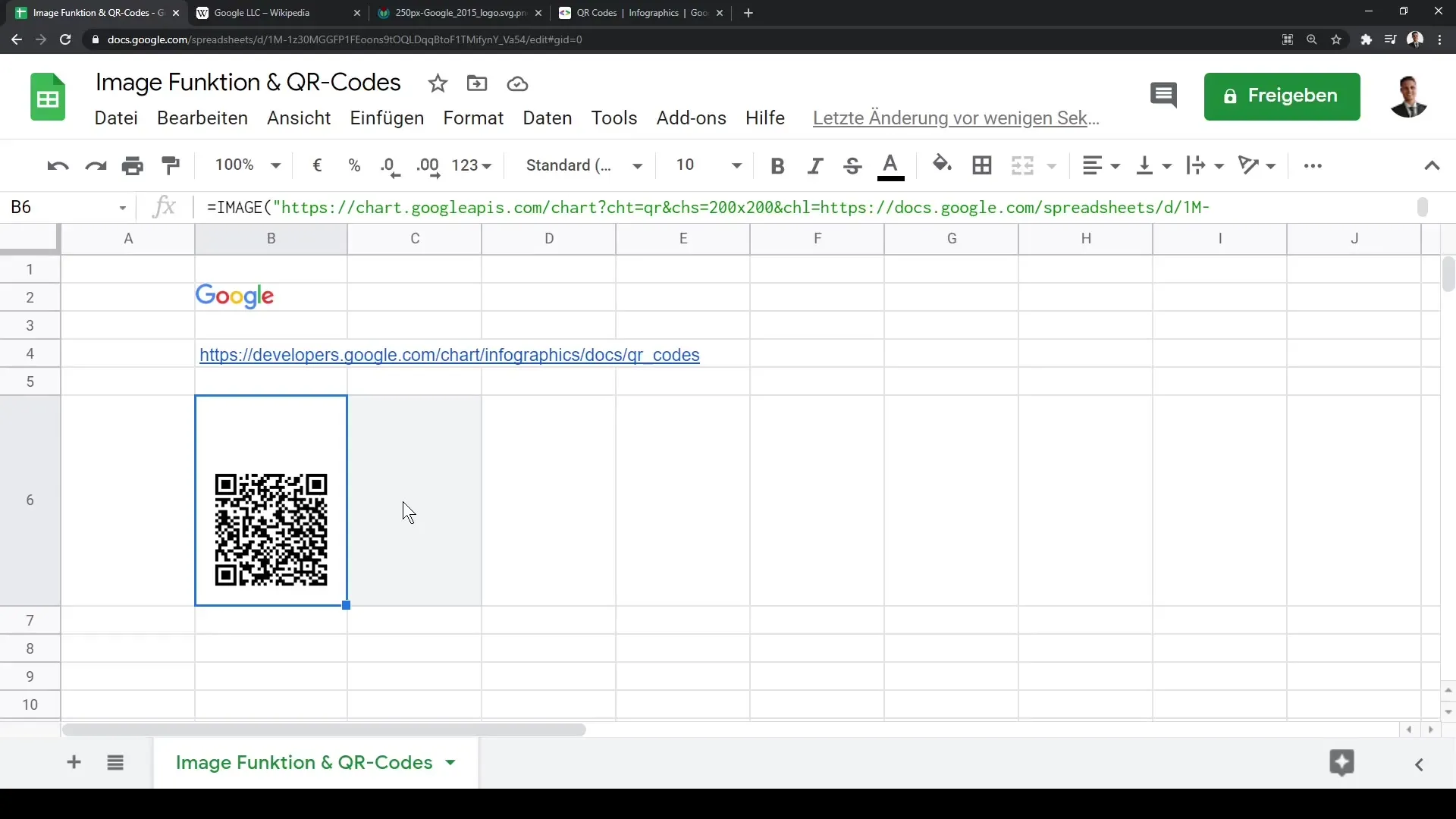 Kuidas luua QR-kood Google Sheets'is?QR-koodi saate luua, sisestades URL-i pildi funktsiooni koos õigete parameetritega Google Chartsi jaoks.