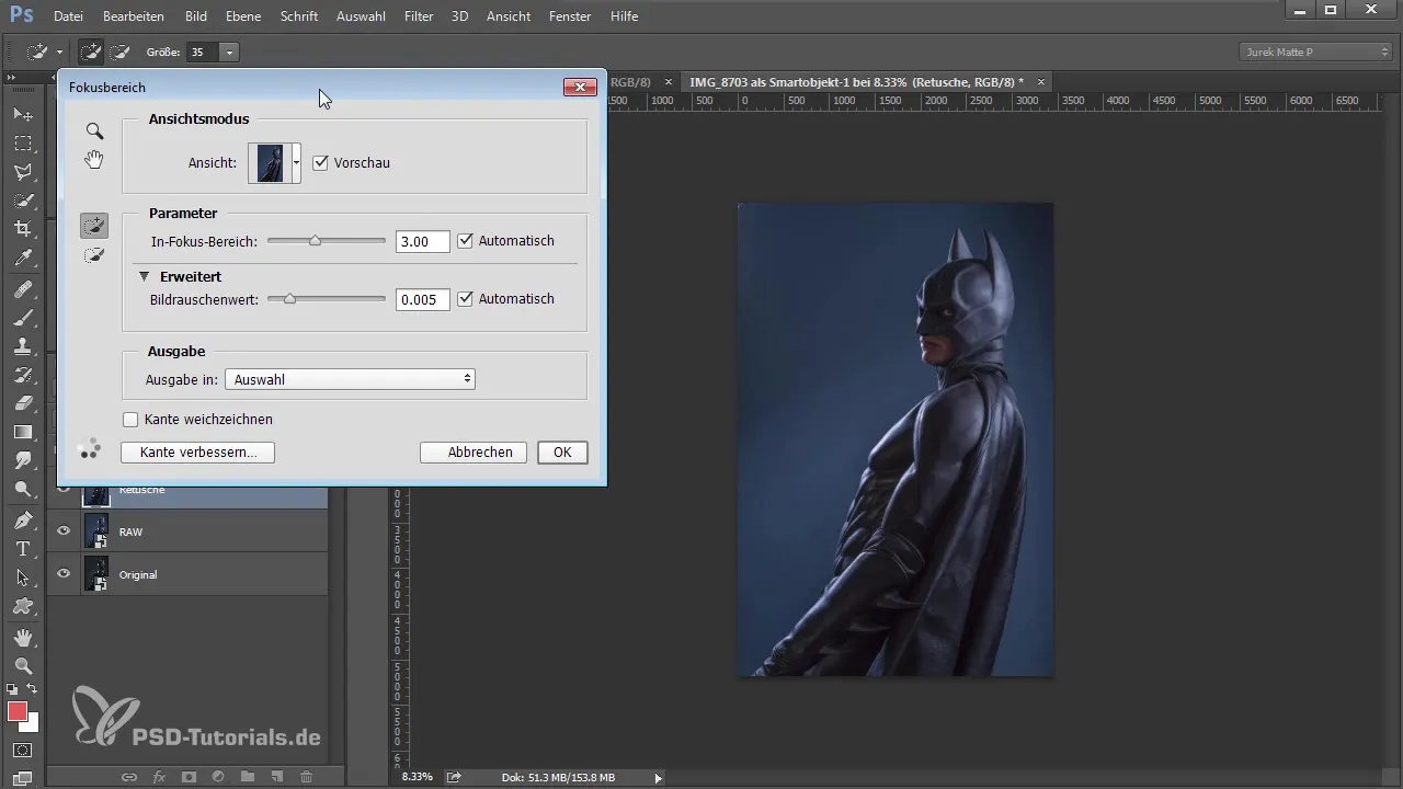 Johdonmukaisuus editoinnissa auttaa sinua navigoimaan sujuvammin kuvan läpi. Kiinnitä erityistä huomiota kohtiin, joissa kontrastit mallin ja taustan välillä eivät ole voimakkaita. Täällä polkutyökalun käyttö voi olla erityisen hyödyllistä.